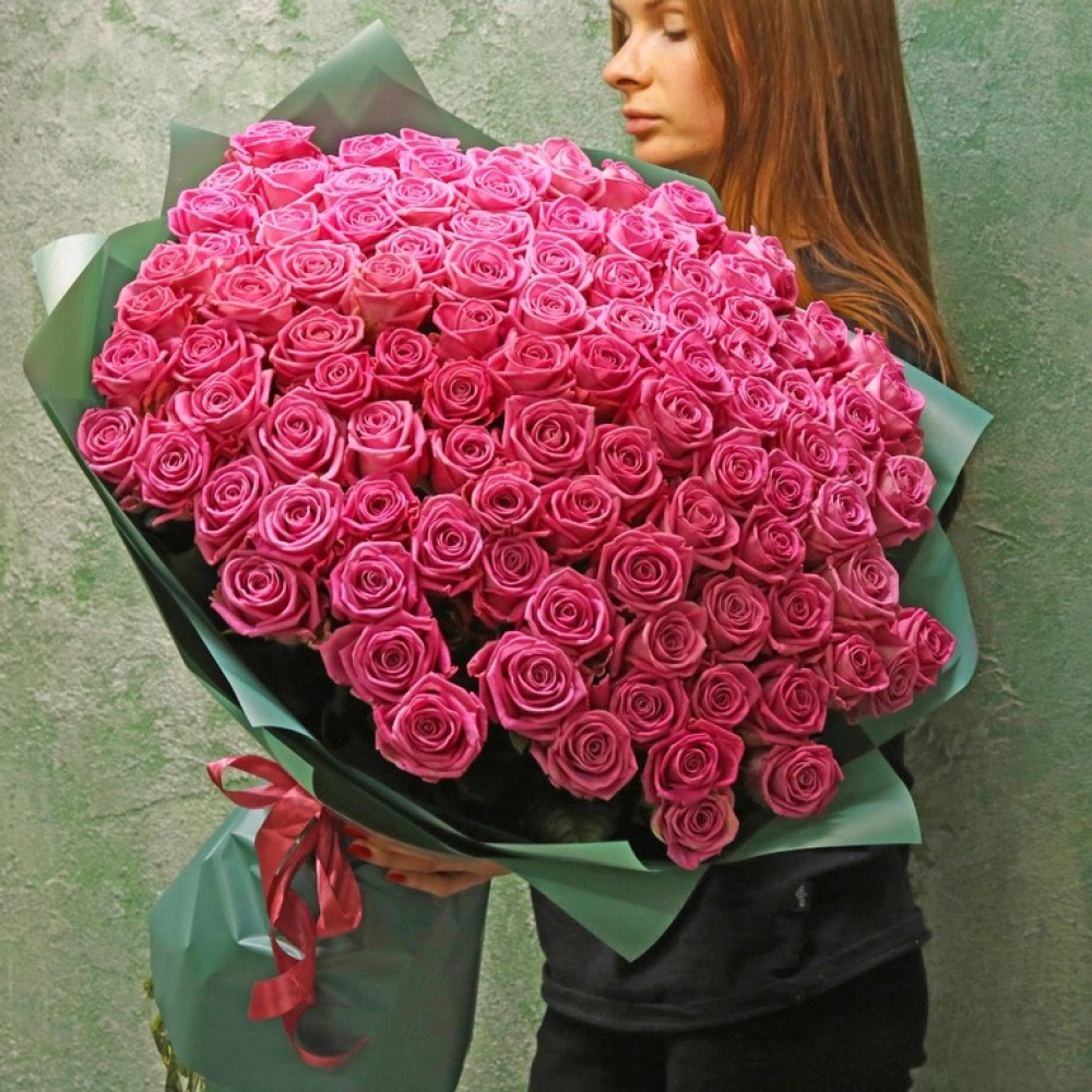Букет из 101 красной розы. Можно выбрать любую длину роз для вашего букета.