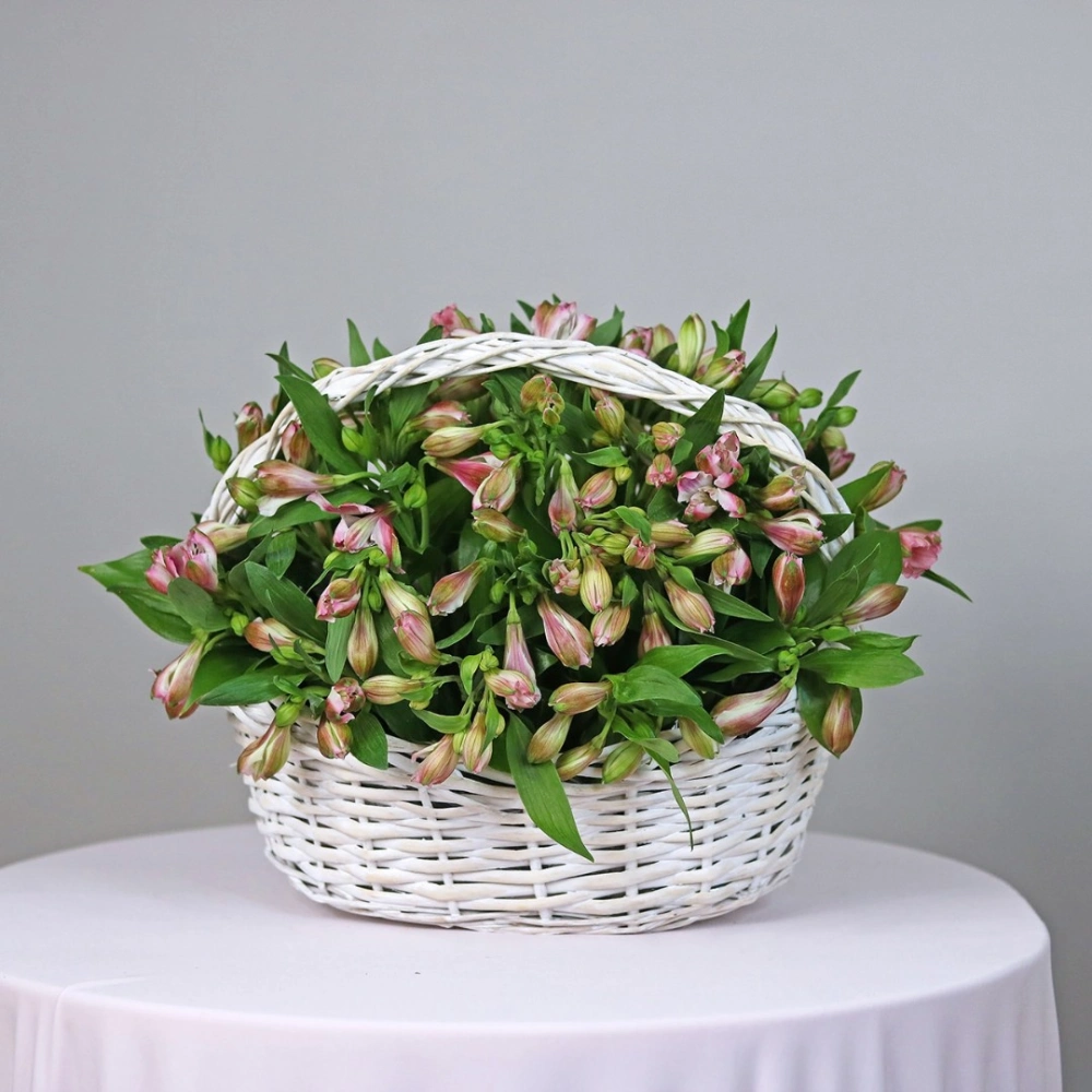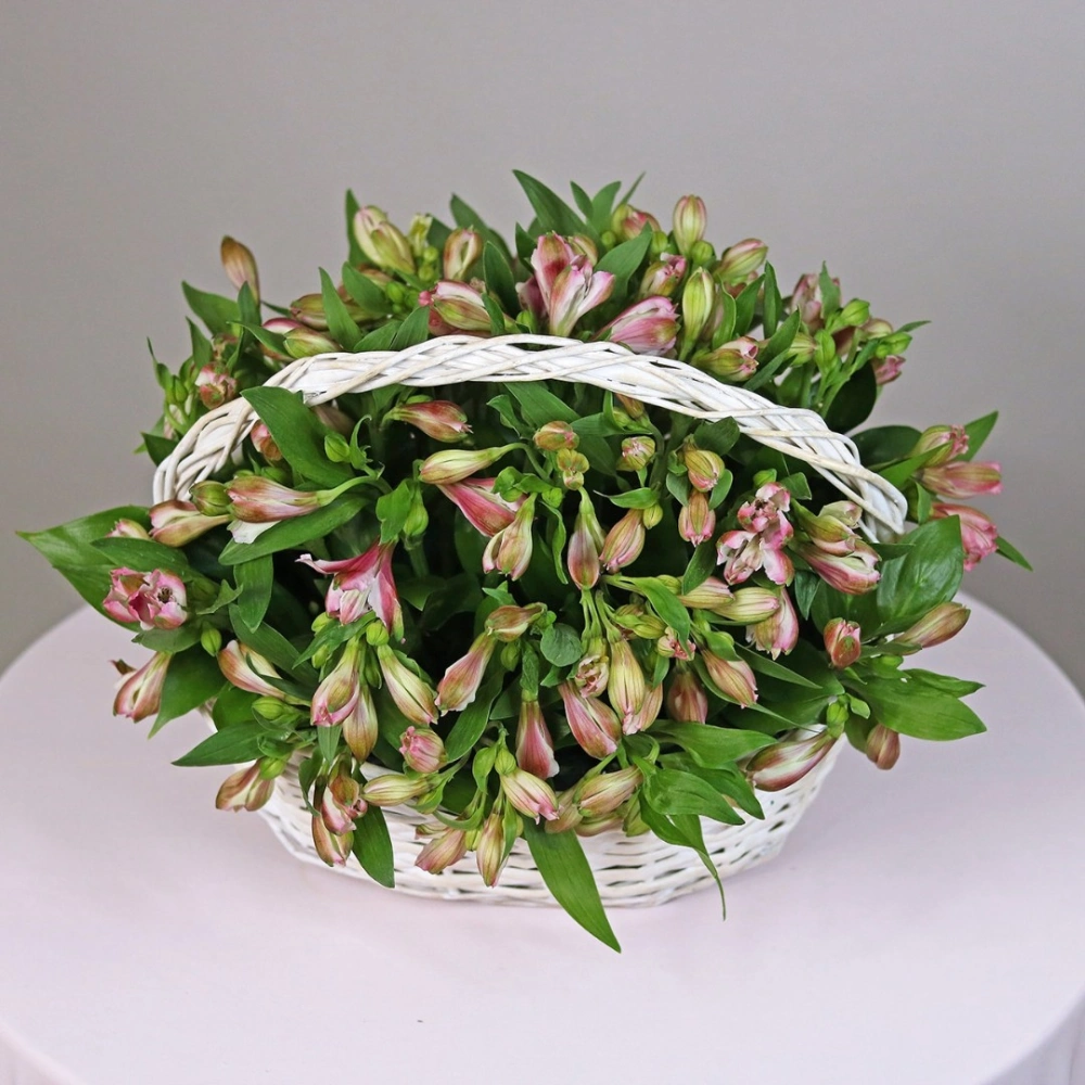 Корзина с альстромериями - это изысканный и стильный подарок для любого случая. В корзине представлены свежие цветы альстромерии розового цвета, которые привлекают внимание своей красотой и изысканностью. Кроме того, корзина оформлена в соответствии с последними тенденциями в дизайне цветочных композиций и выглядит очень элегантно. Этот подарок станет настоящим украшением для любого интерьера и порадует своего получателя своей изысканностью и красотой. Заказать корзину с альстромериями в интернет-магазине Дакота флора - это просто и удобно, доставка осуществляется в любую точку города в указанное время.