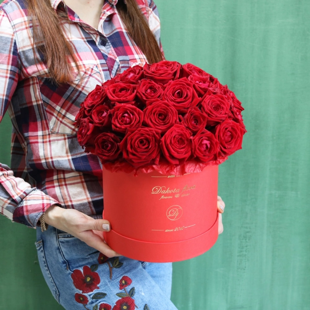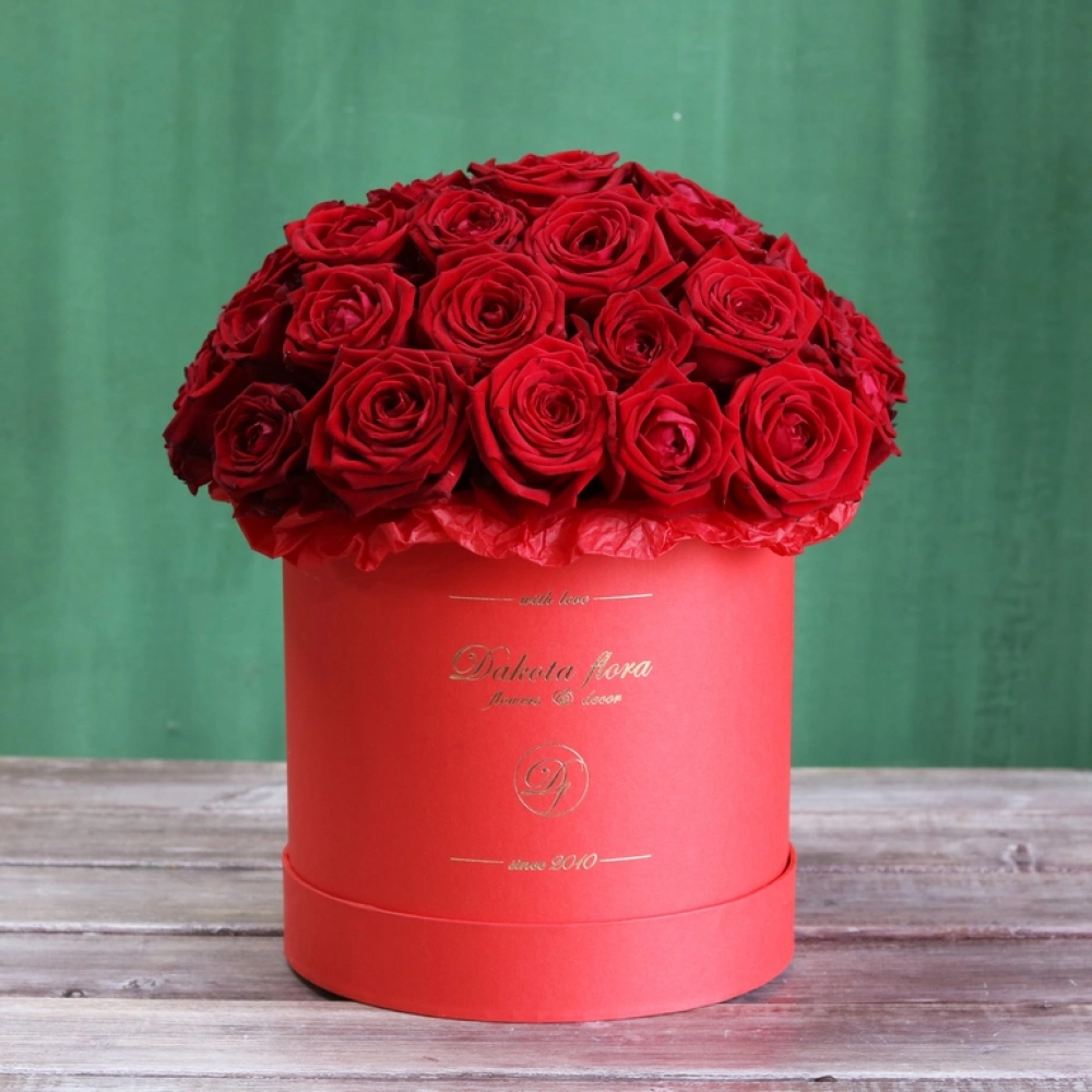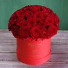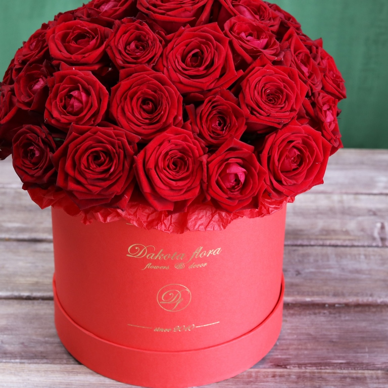 Цветы в коробках это композиции, составленные с использованием специальной губки Oasis (пиафлор) которая пропитана водой. Для того чтобы цветы дольше оставались свежими, добавляйте в нее немного воды каждый день.