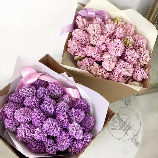 Каждый букет аккуратно упакован и доставляется в картонной сумке-переноске, с водой (в зависимости от времени года) нашим курьером. В основном мы пользуемся услугами пеших курьеров, также можем отправить букет на такси, если адрес находится далеко от метро, за МКАД или при невозможности отправить пешим курьером.