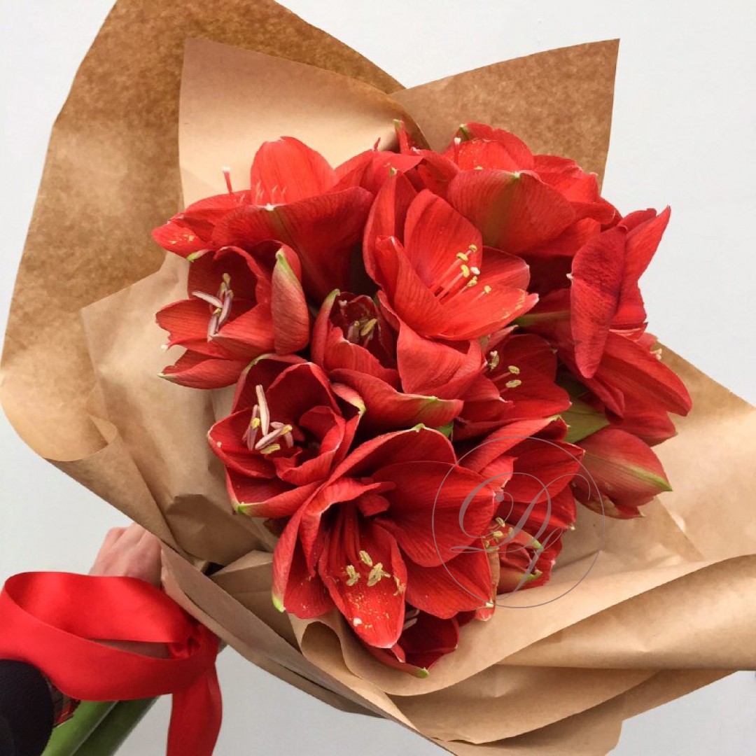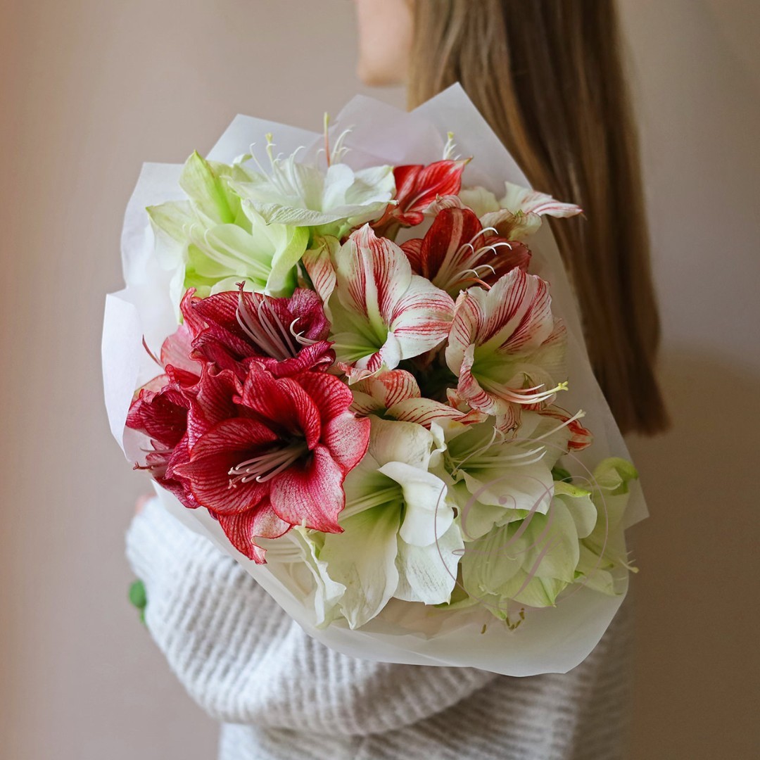 Букет из амариллисов в ассортименте. Вы можете выбрать любое количество цветов указанное в перечне к данному букету.