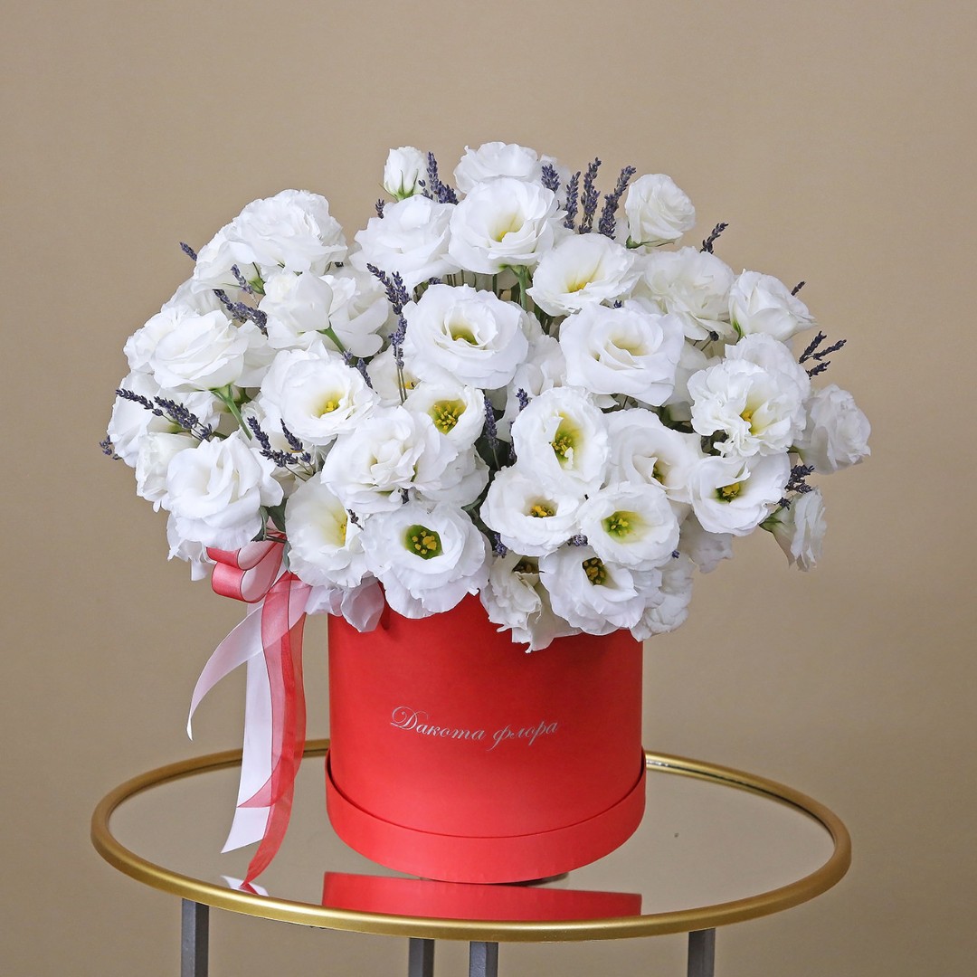 Цветы в коробках это композиции, составленные с использованием специальной губки Oasis (пиафлор) которая пропитана водой. Для того чтобы цветы дольше оставались свежими, добавляйте в нее немного воды каждый день.