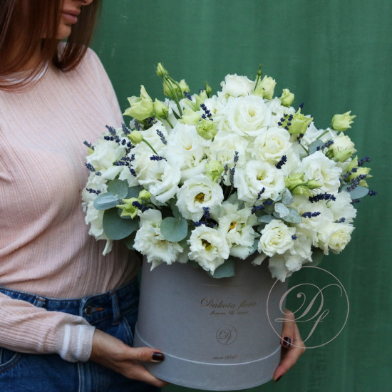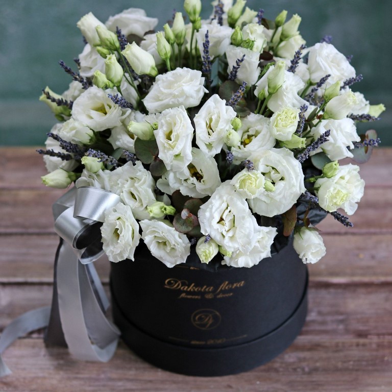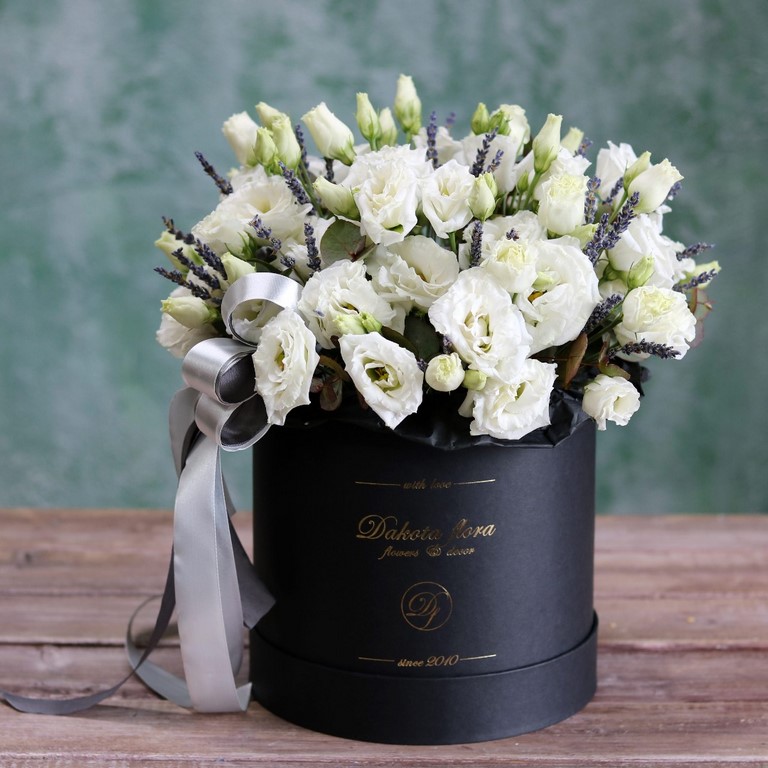 Цветы в коробках это композиции, составленные с использованием специальной губки Oasis (пиафлор) которая пропитана водой. Для того чтобы цветы дольше оставались свежими, добавляйте в нее немного воды каждый день.