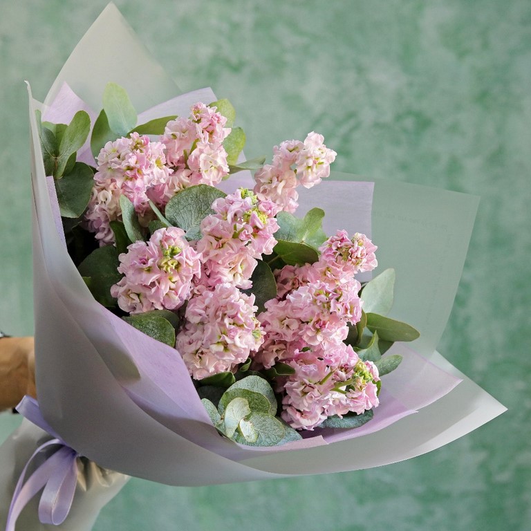 Букет из Маттиолы. Душистые цветы маттиолы бывают разного цвета, на одном стебле собрано множество соцветий, цветок невероятно ароматный. Вы можете выбрать любое количество цветов указанное в перечне к данному букету.