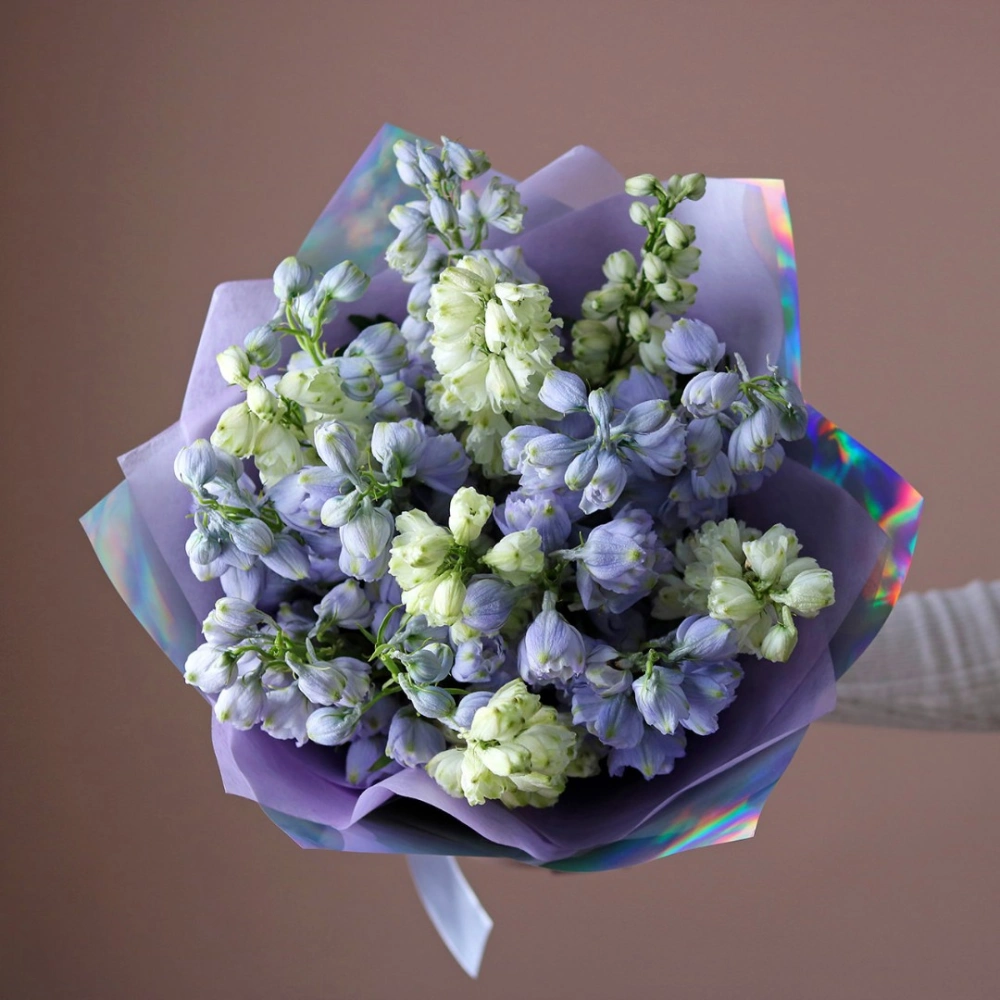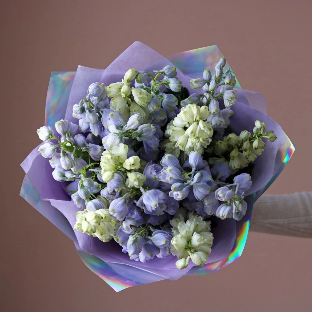 Бело-голубой букет дельфиниума