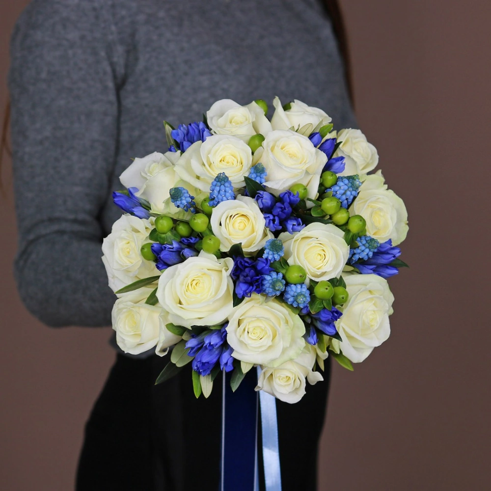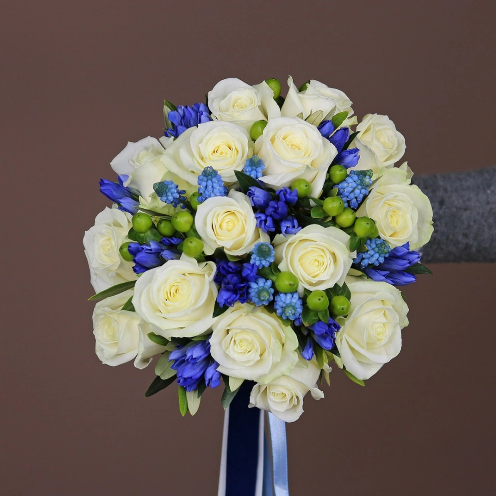 Бело-голубой букет невесты