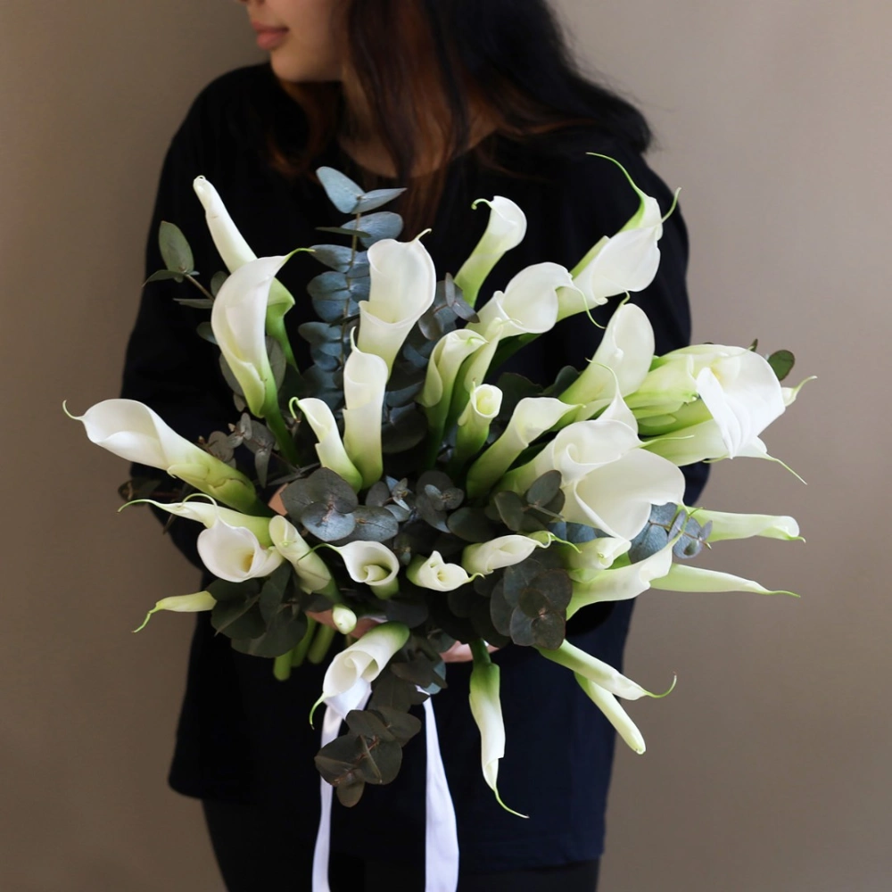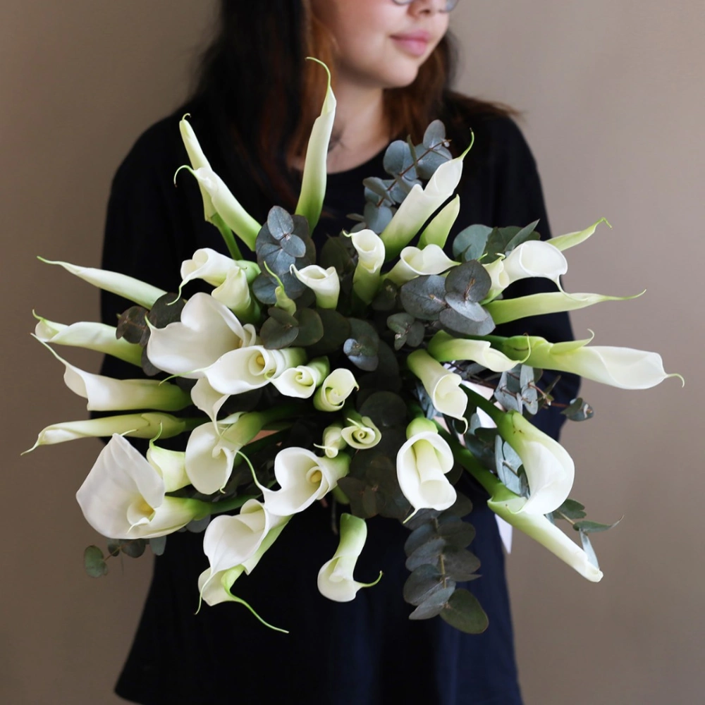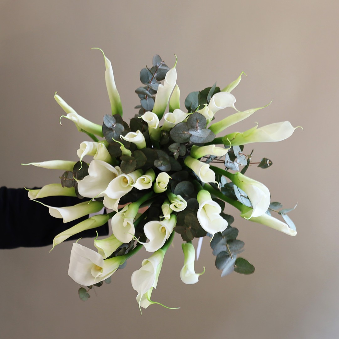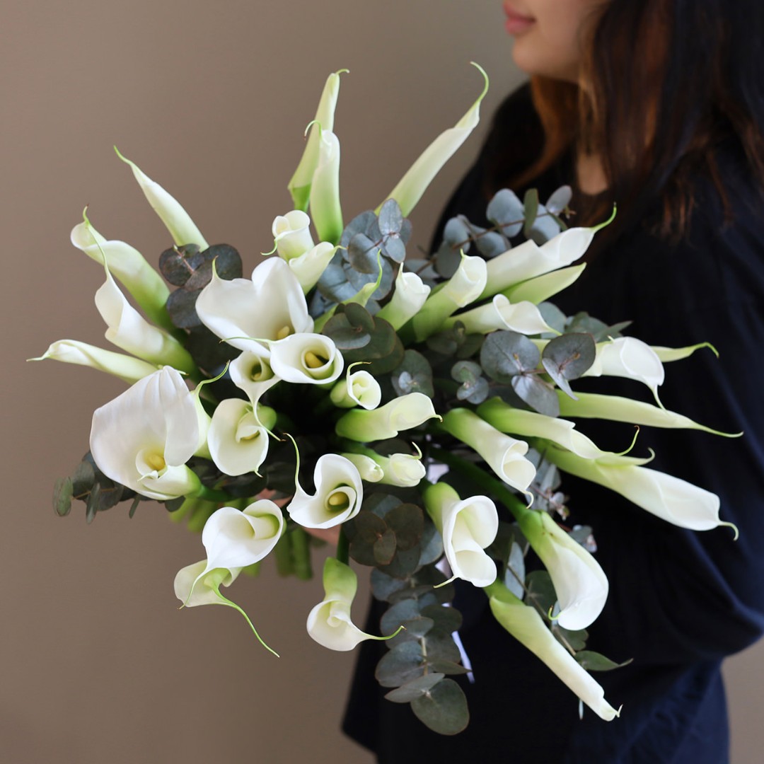 Белые каллы с эвкалиптом