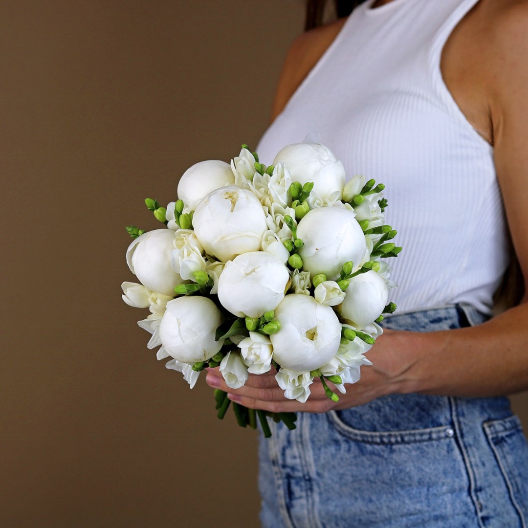 Белые пионы и фрезия