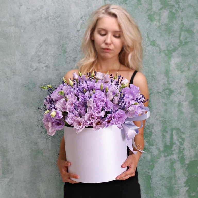 Цветы в коробках это композиции, составленные с использованием специальной губки Oasis (пиафлор) которая пропитана водой. Для того чтобы цветы дольше оставались свежими, добавляйте в нее немного воды каждый день.