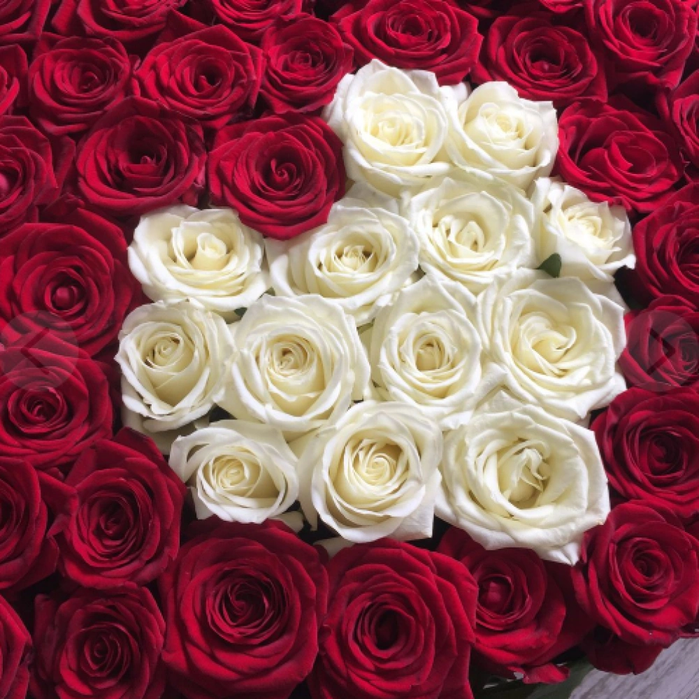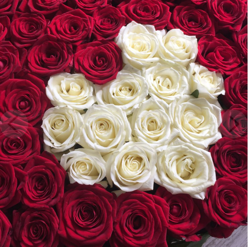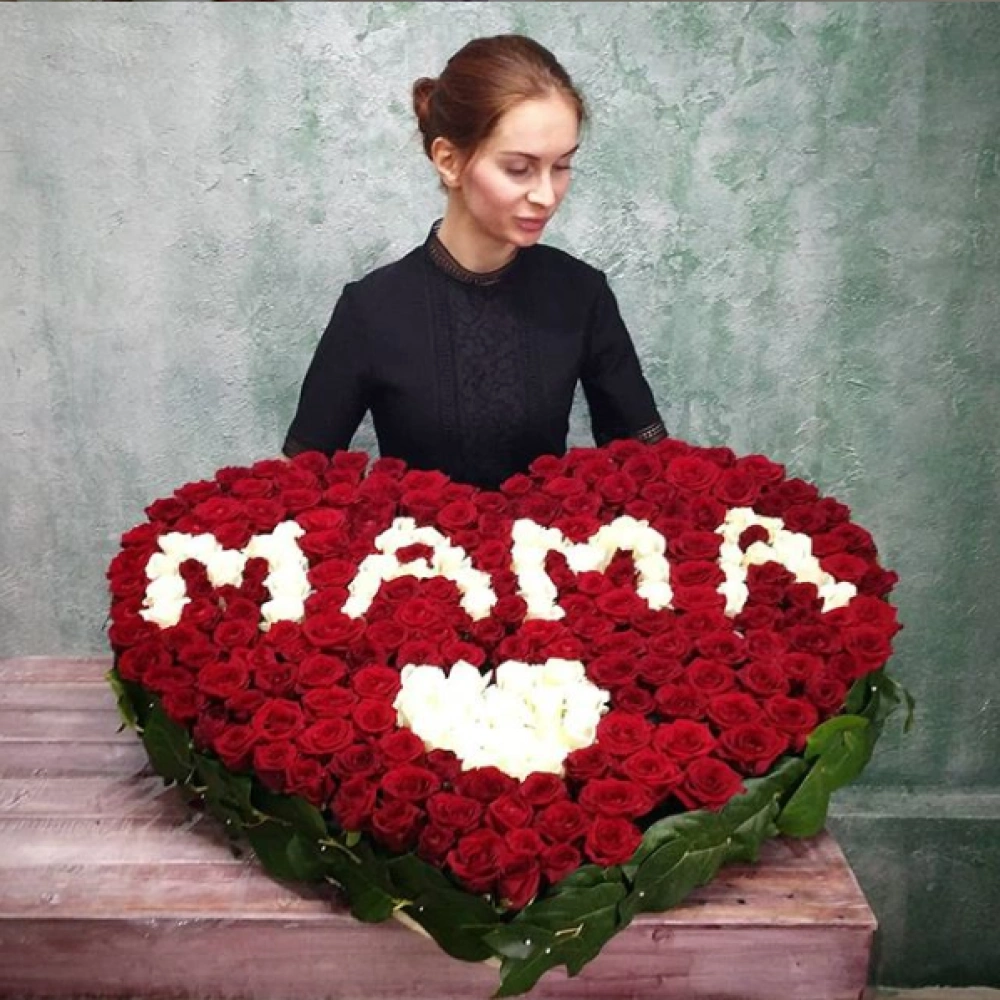 Большое сердце из роз с надписью "Мама"