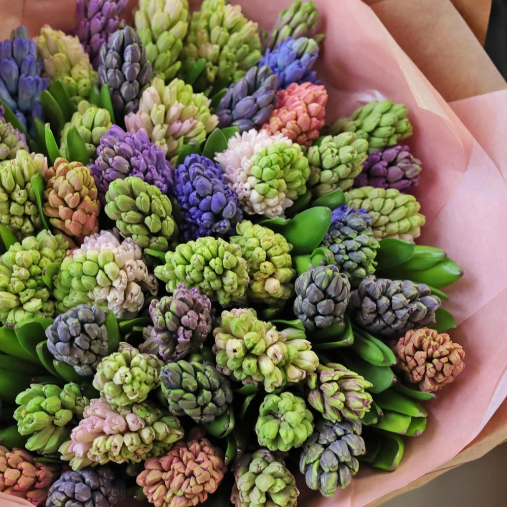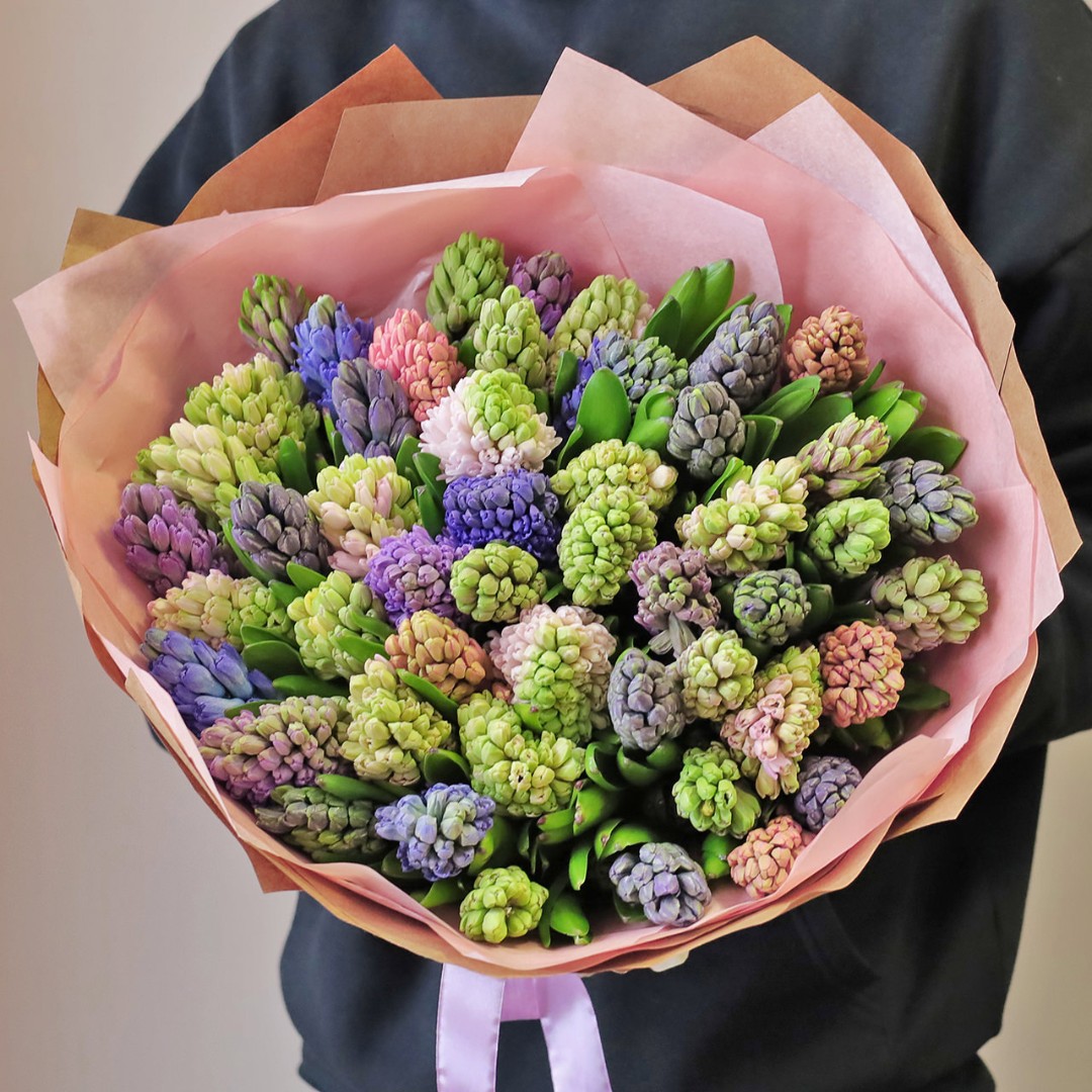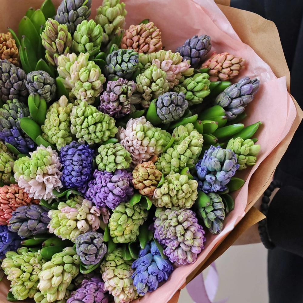 Букет из разноцветных гиацинтов. Вы можете выбрать любое количество цветов указанное в перечне к данному букету.
