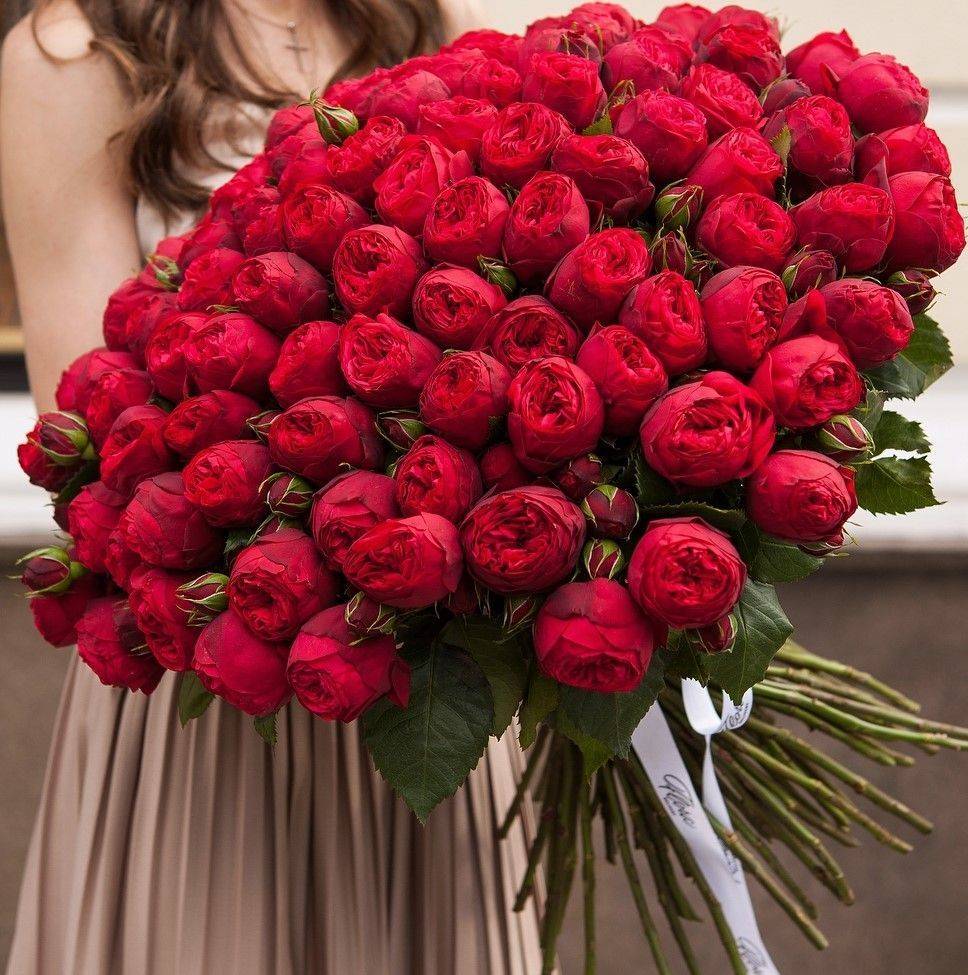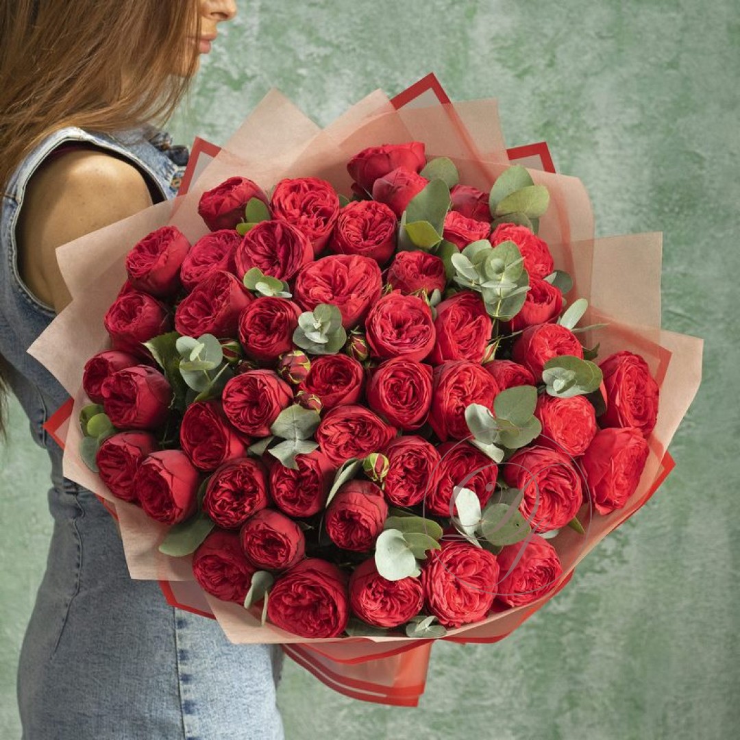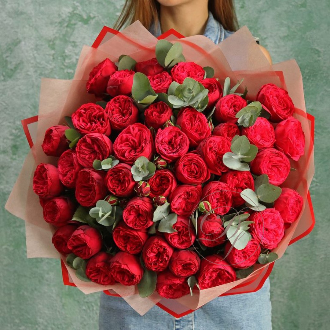Букет из красных пионовидных роз сорта Ред пиано. Вы можете выбрать любое количество цветов указанное в перечне к данному букету.