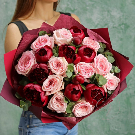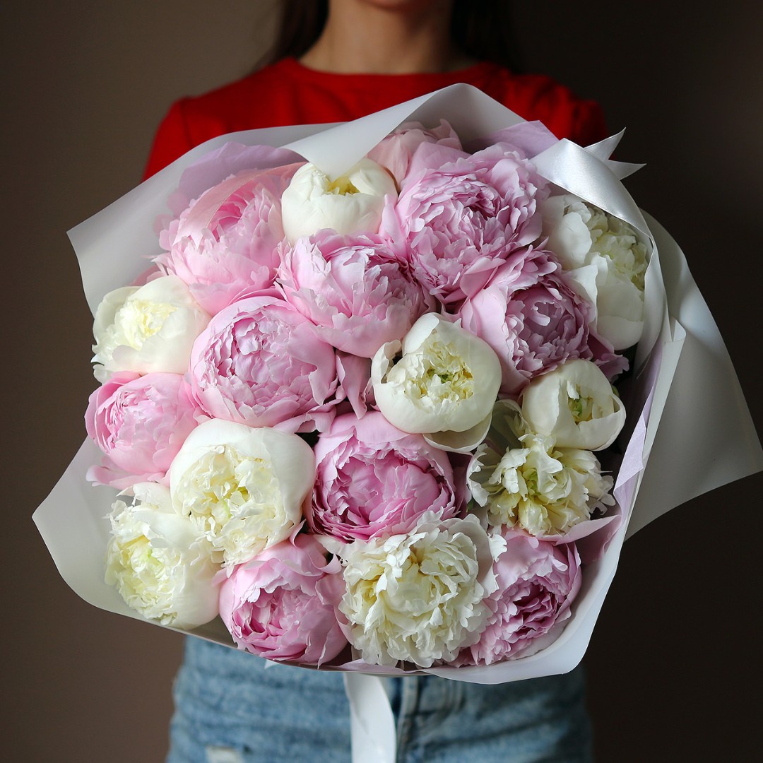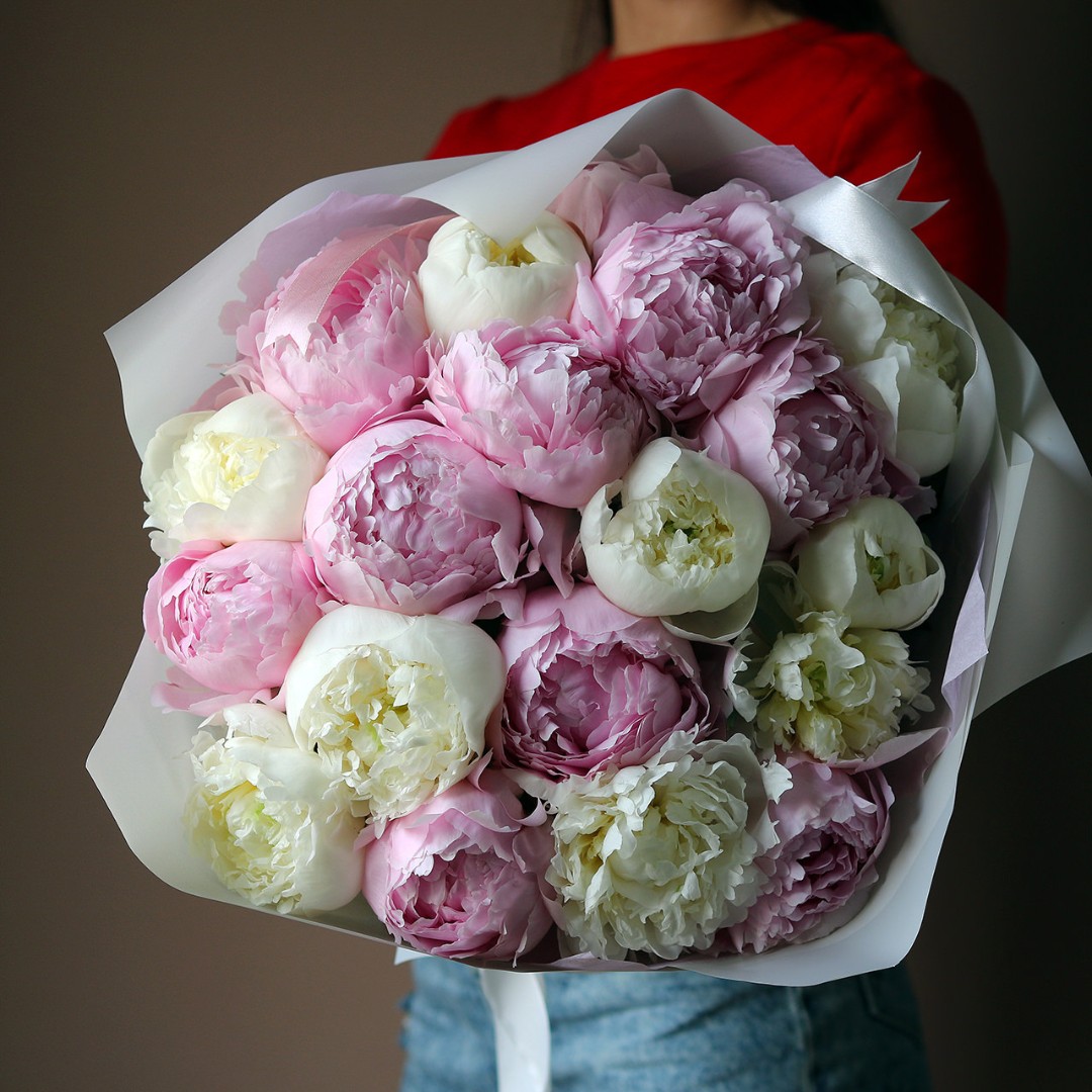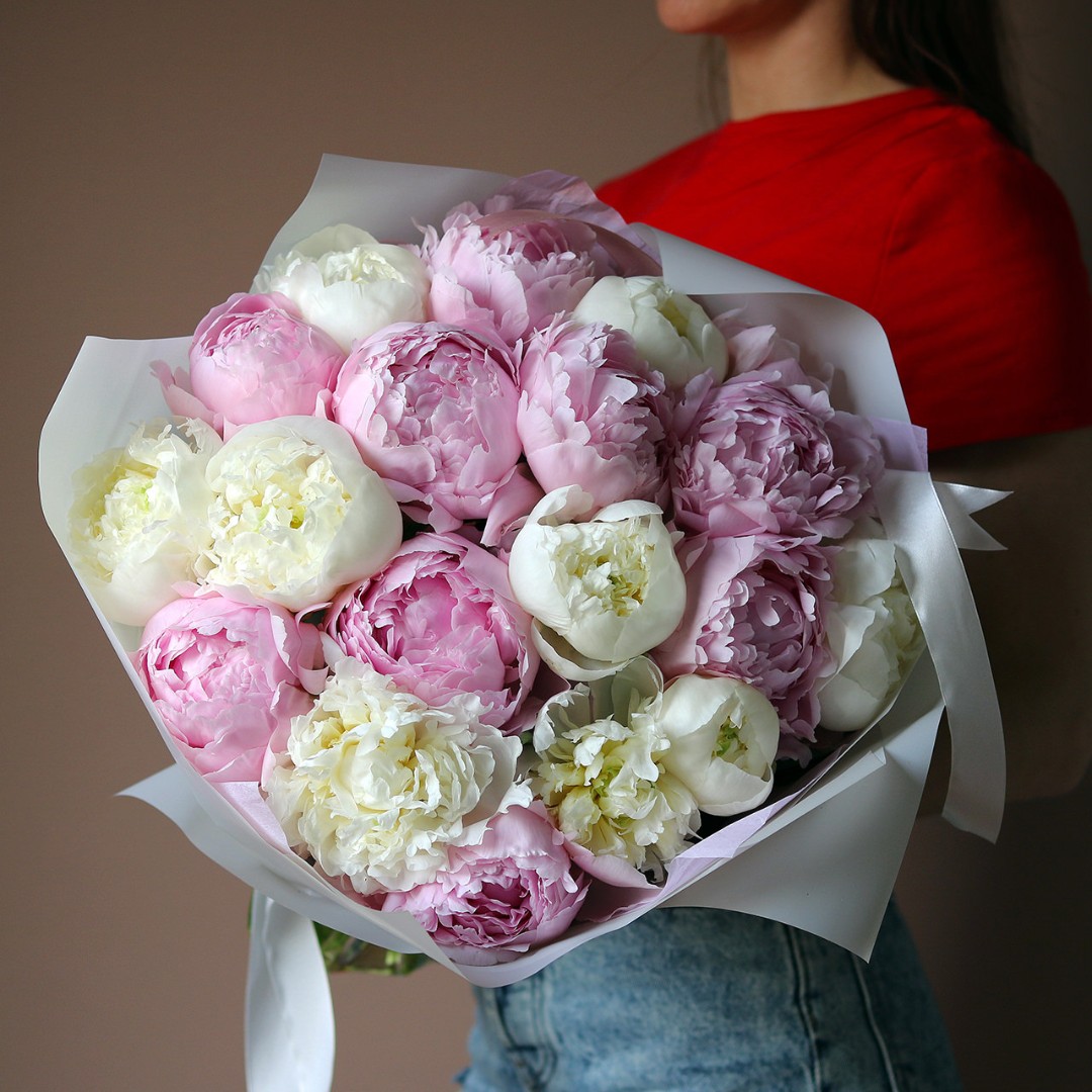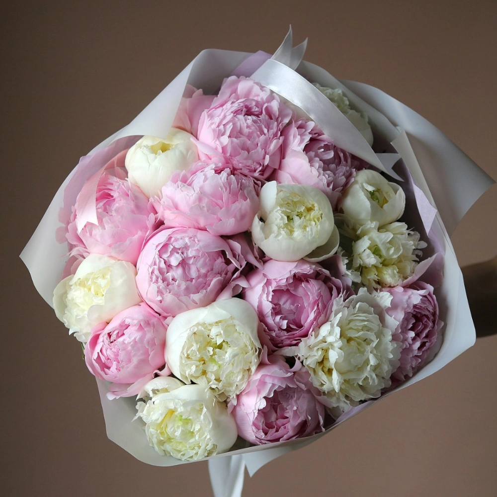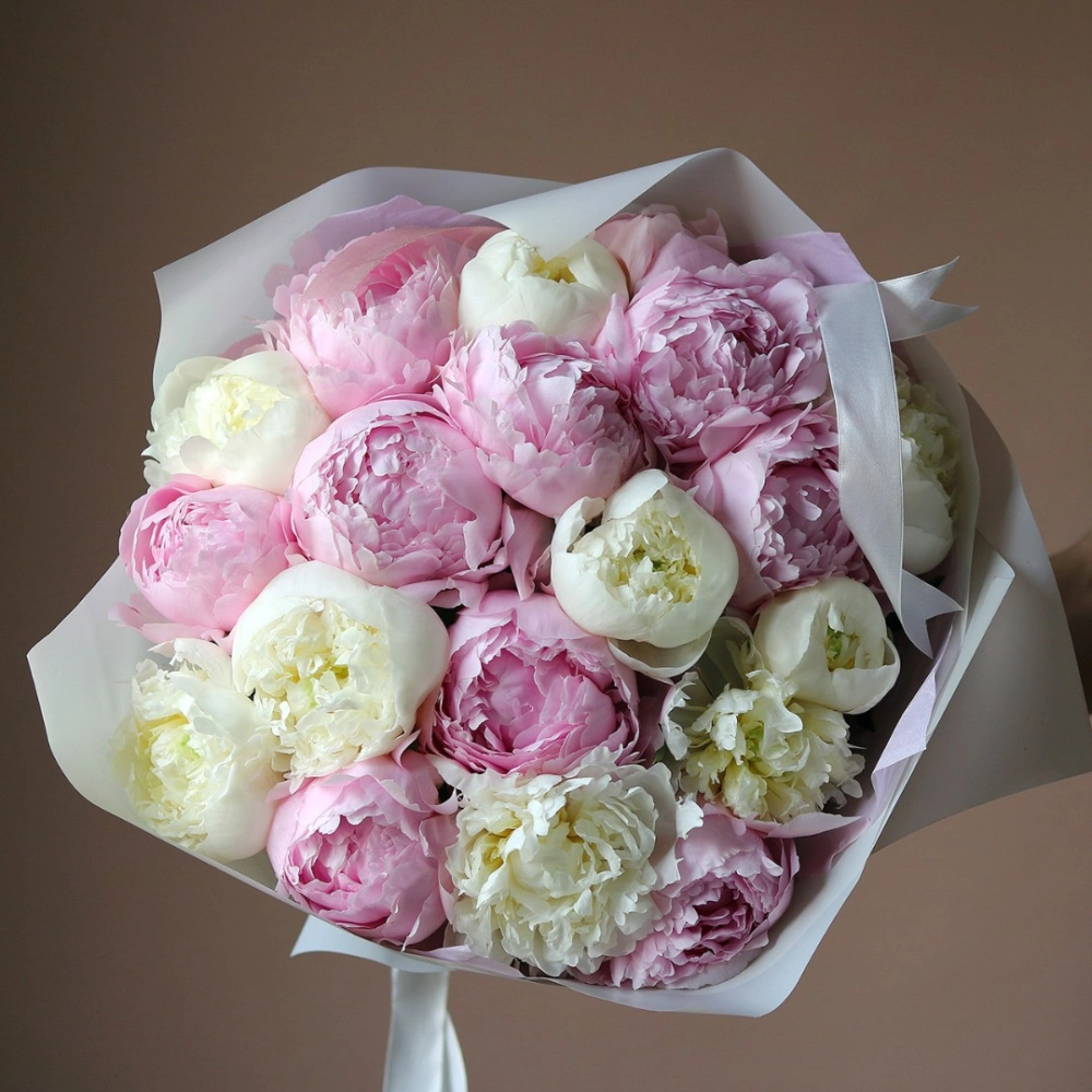 Букет белых и розовых пионов