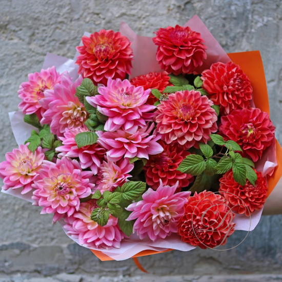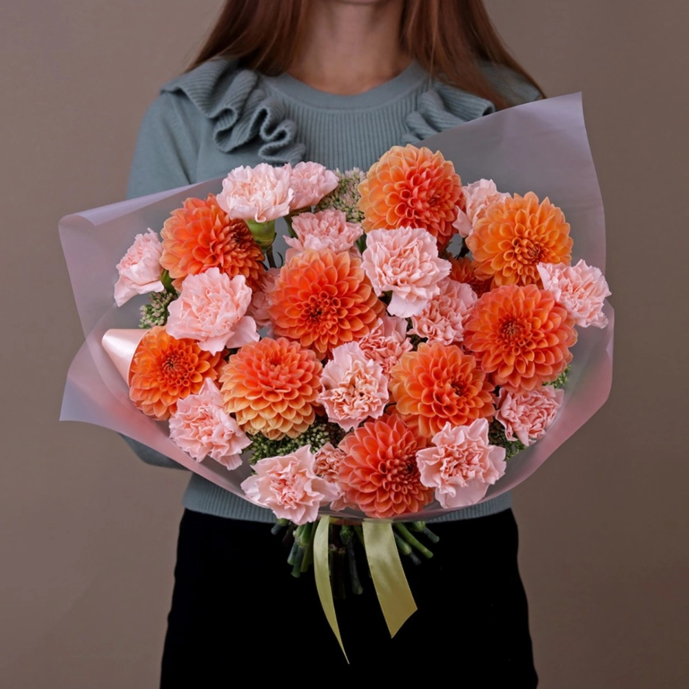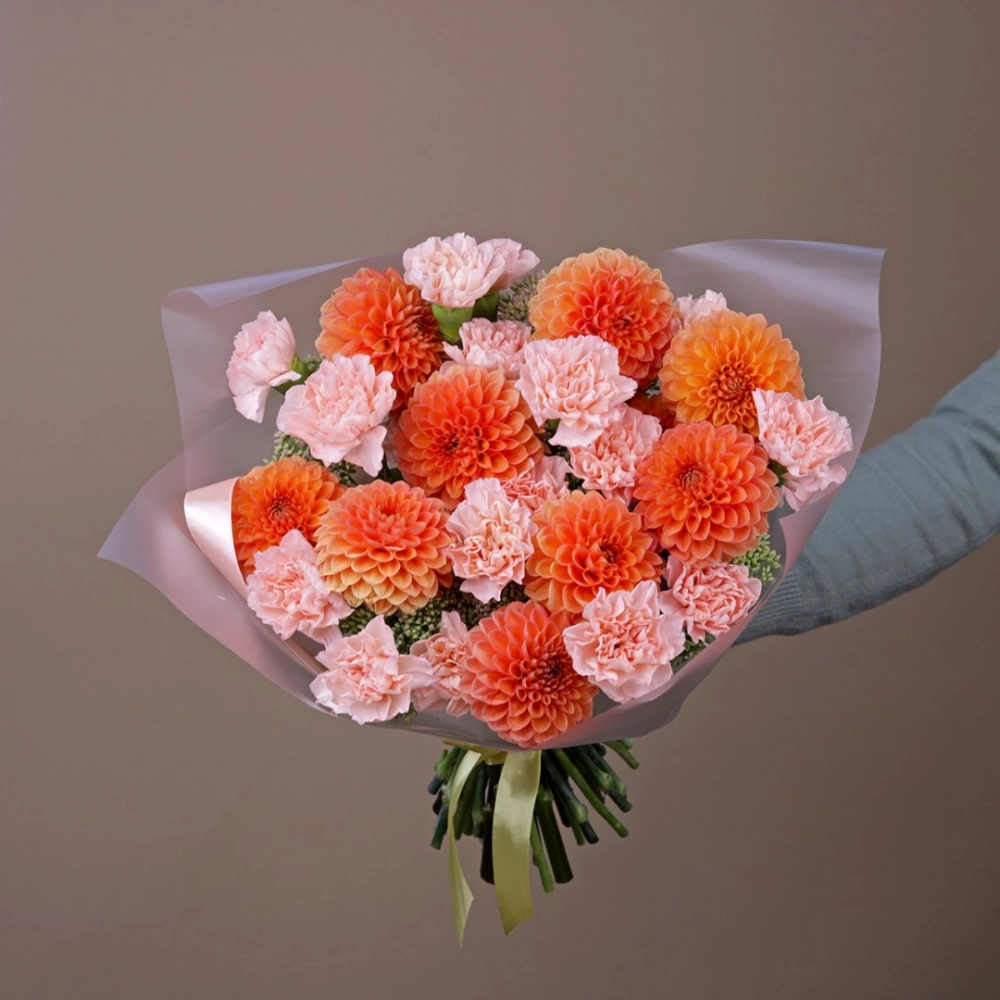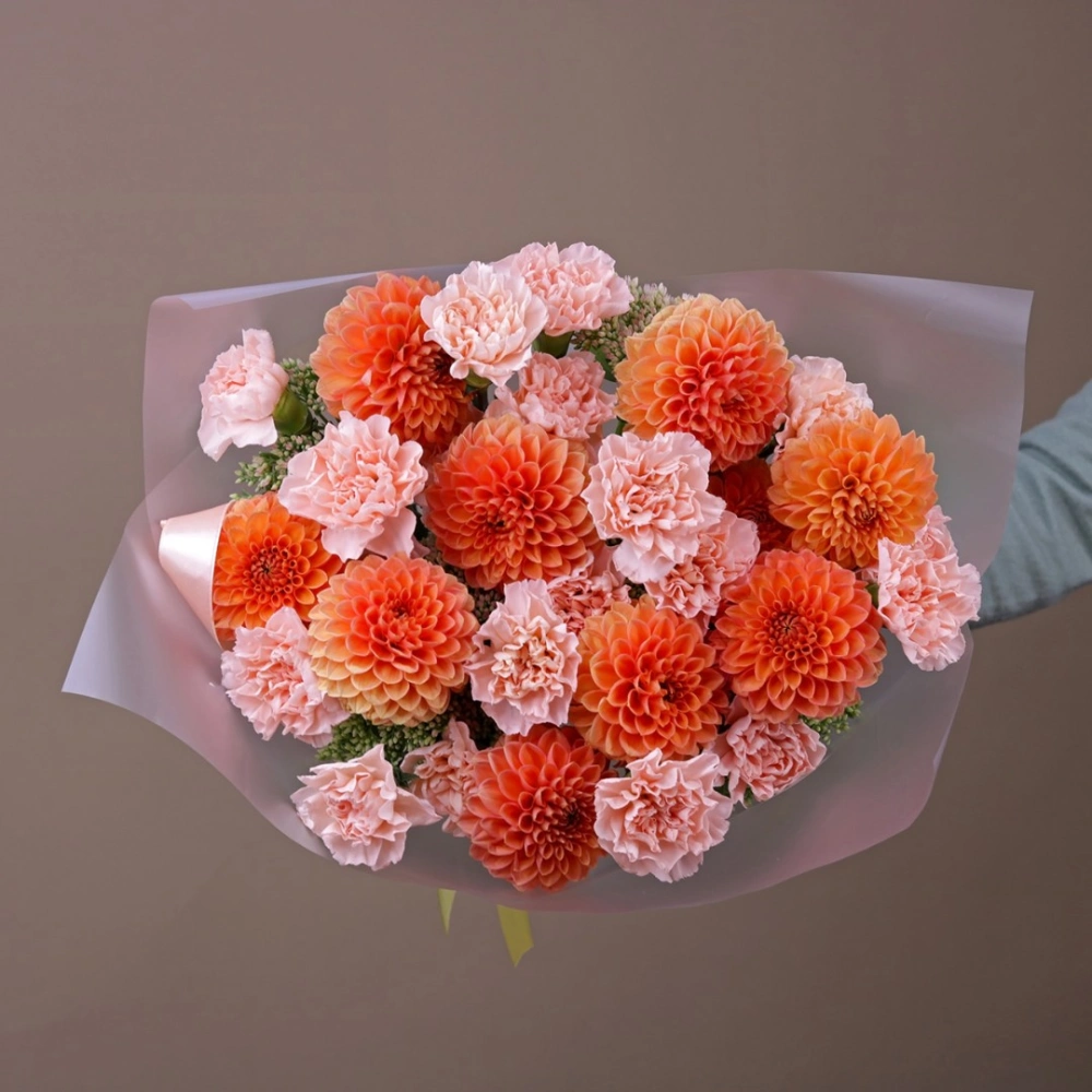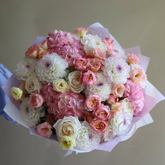 Букет из Георгин и эустомы. Вы можете выбрать любое количество цветов указанное в перечне к данному букету.