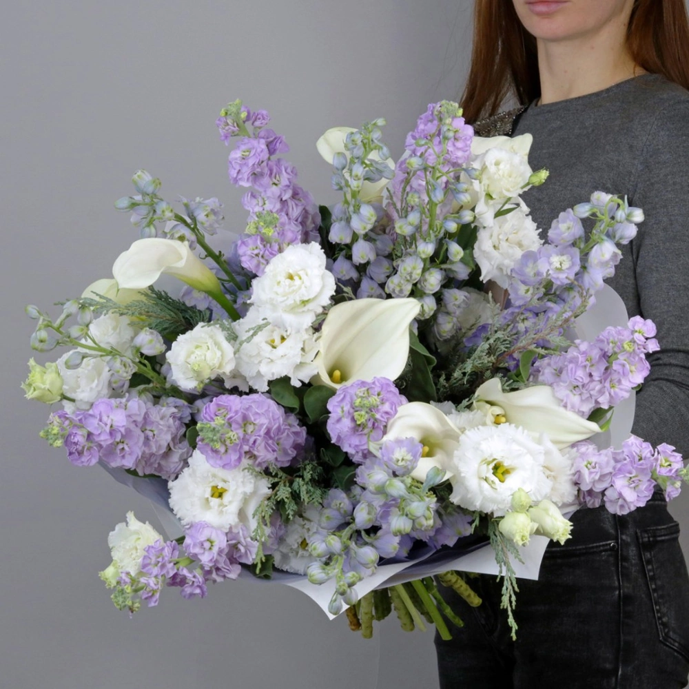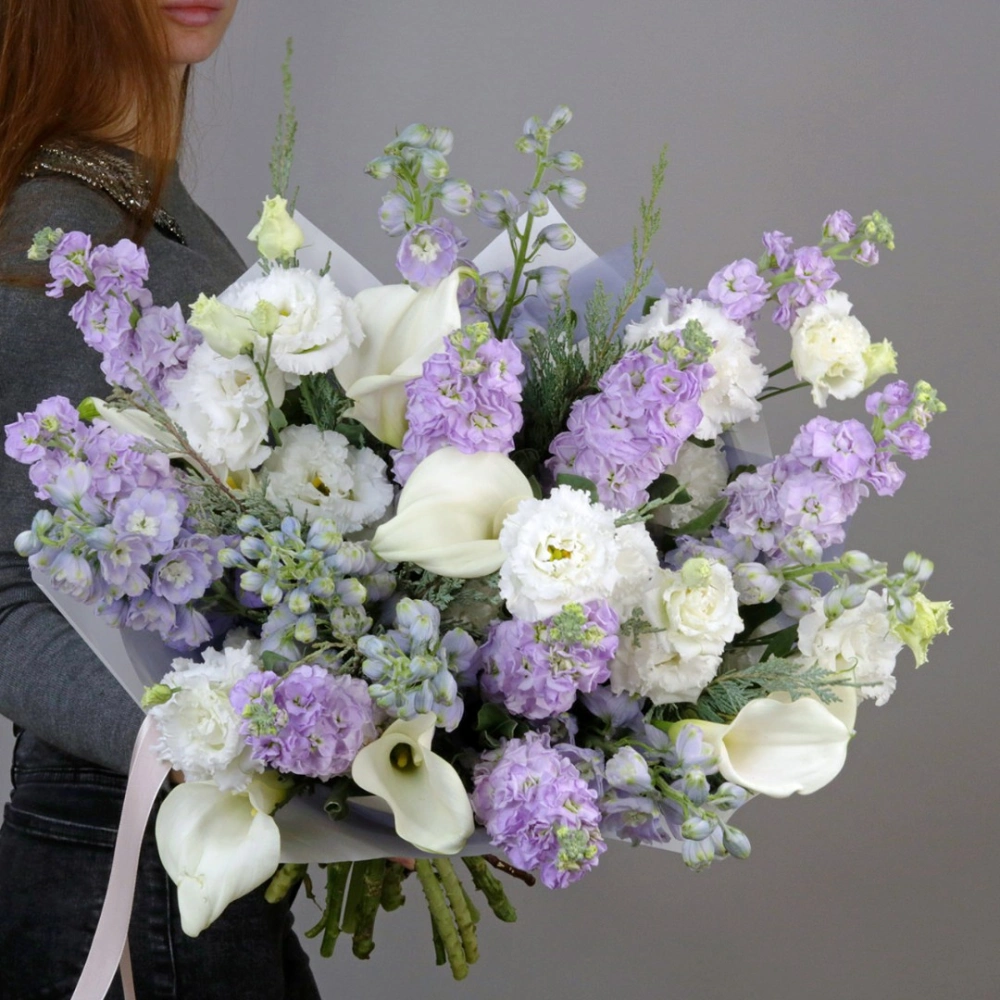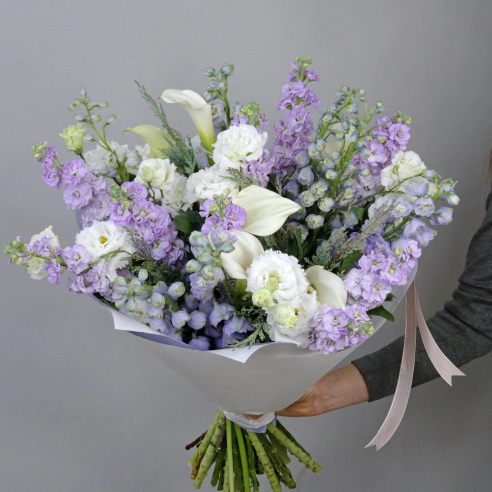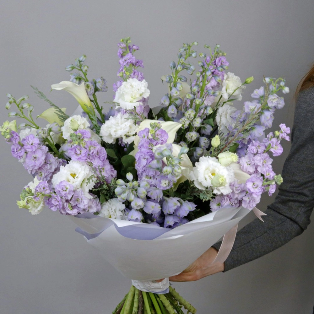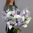 Полевой букет из маттиолы, антиринума и дельфиниума. Букет может быть собран в другой цветовой гамме. Количество цветов в букете вы можете выбрать в параметрах. Вы можете выбрать любое количество цветов указанное в перечне к данному букету.