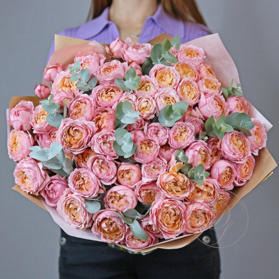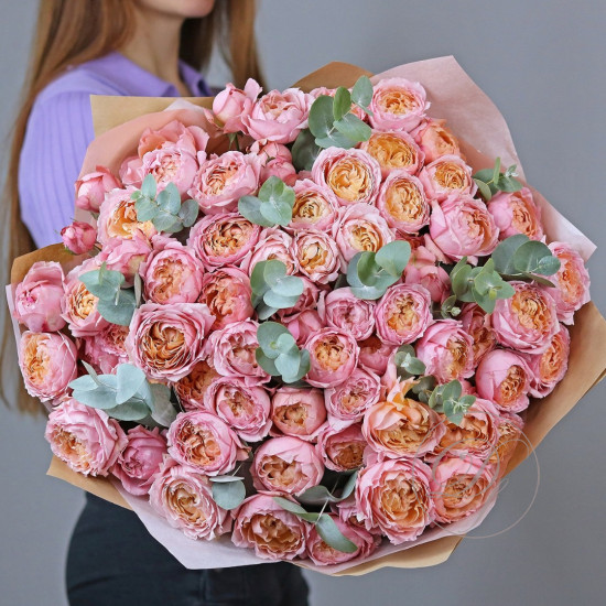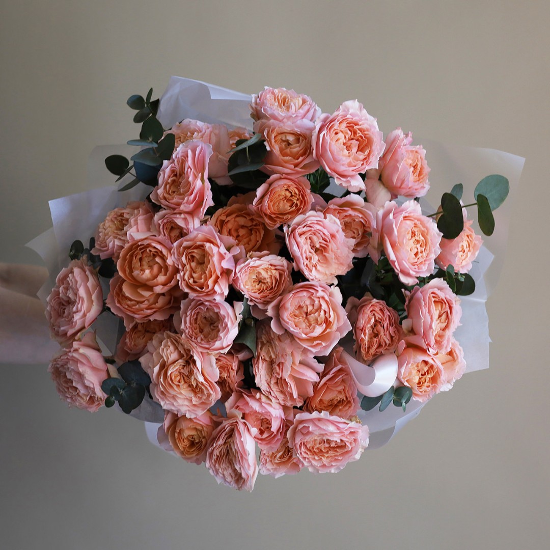 Букет из кустовой пионовидной розы сорт Джульетта. Вы можете выбрать любое количество цветов указанное в перечне к данному букету.