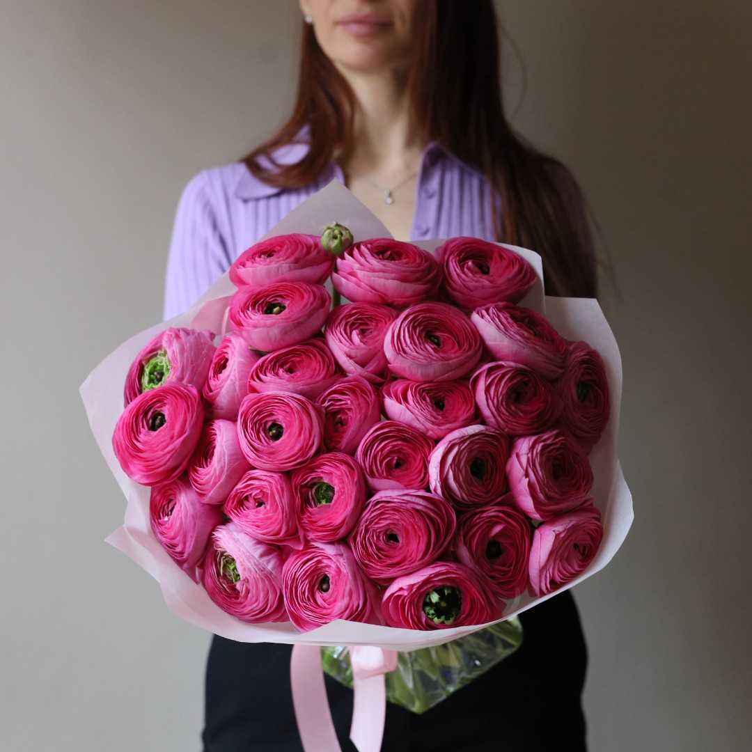 Букет ранункулюсов ханой. На фотографии 19 ранункулюсов в букете. Лососёвые ранункулюсы ханой в букете. Вы можете выбрать любое количество цветов указанное в перечне к данному букету.