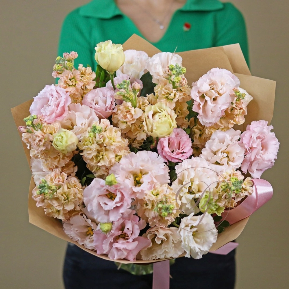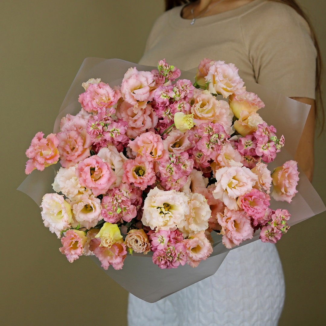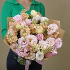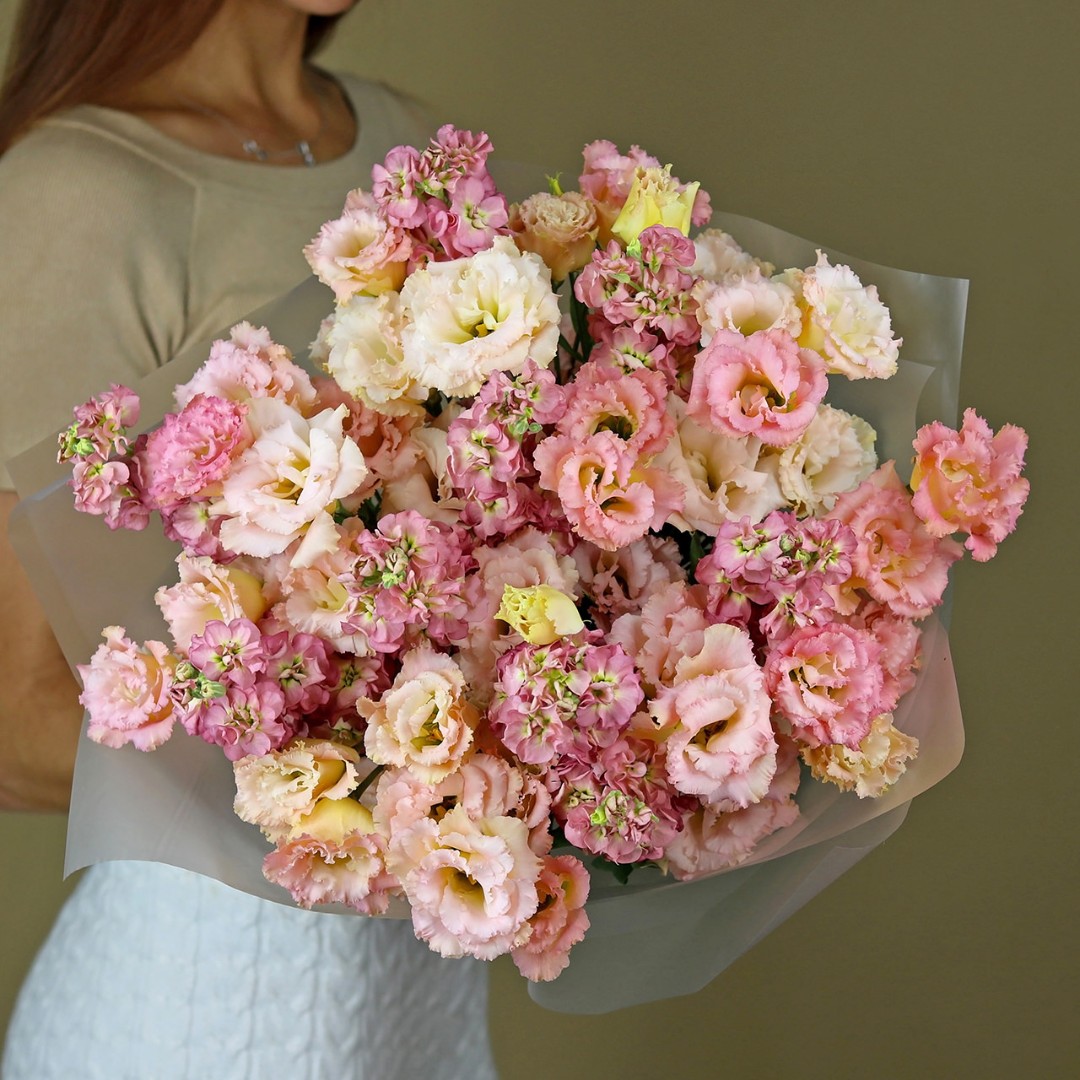 Букет из эустомы и маттиолы. Вы можете выбрать любой размер букета, указаный в перечне к данному букету.