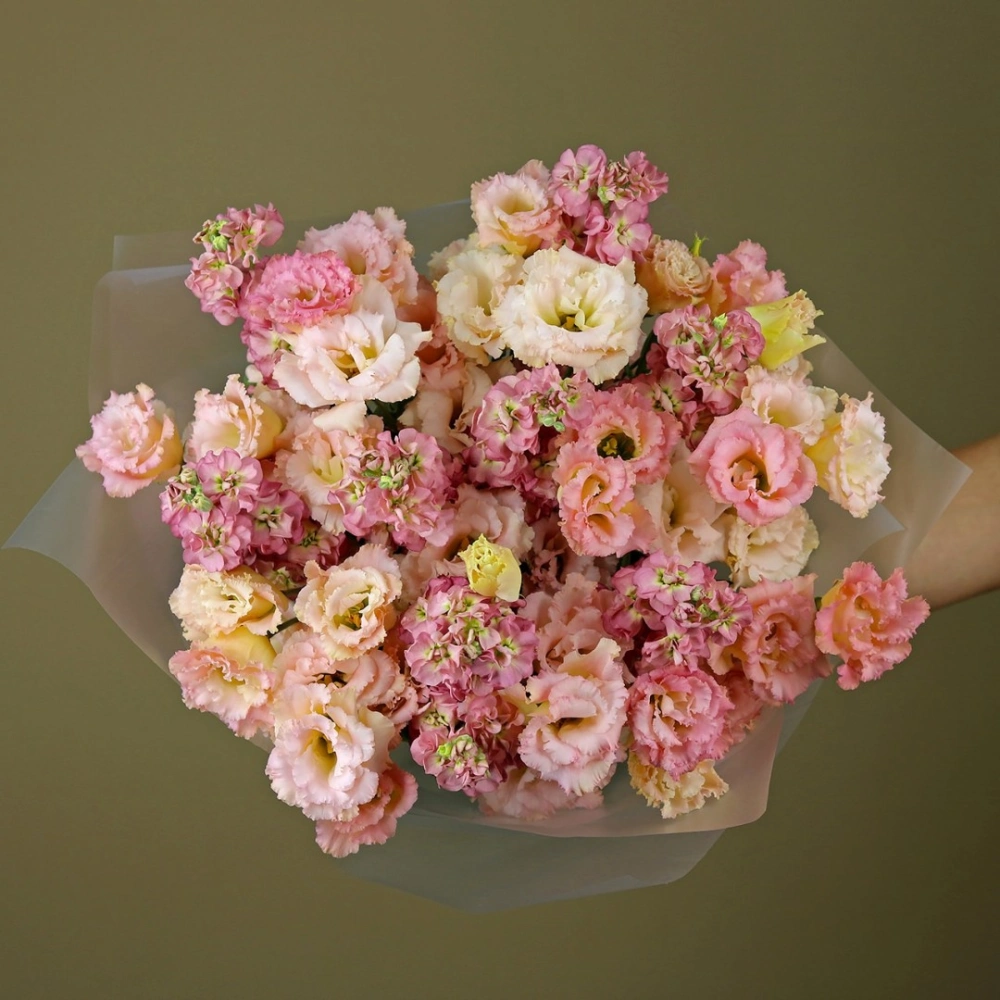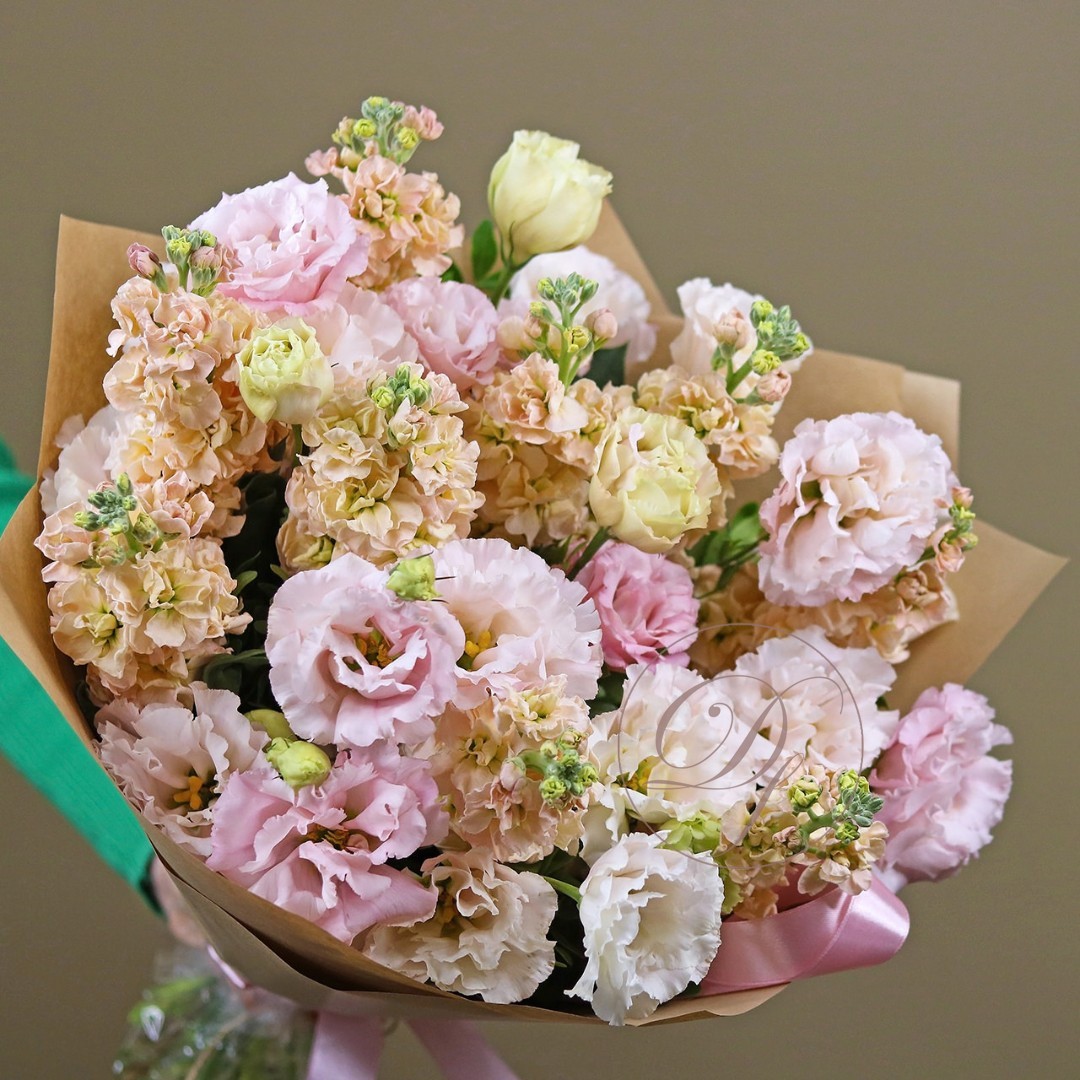Букет из маттиолы и эустомы