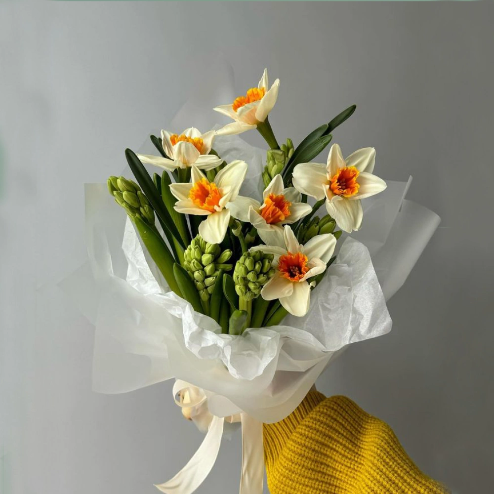 ФИРМЕННАЯ УПАКОВКА + в комплекте с каждым букетом - одноразовая ваза, открытка, коробка