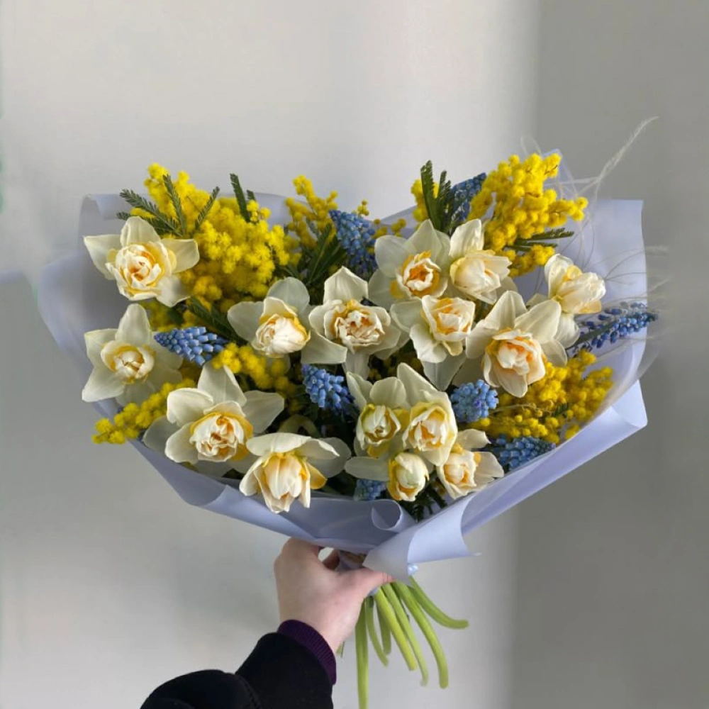 Букет из нарциссов и мускари