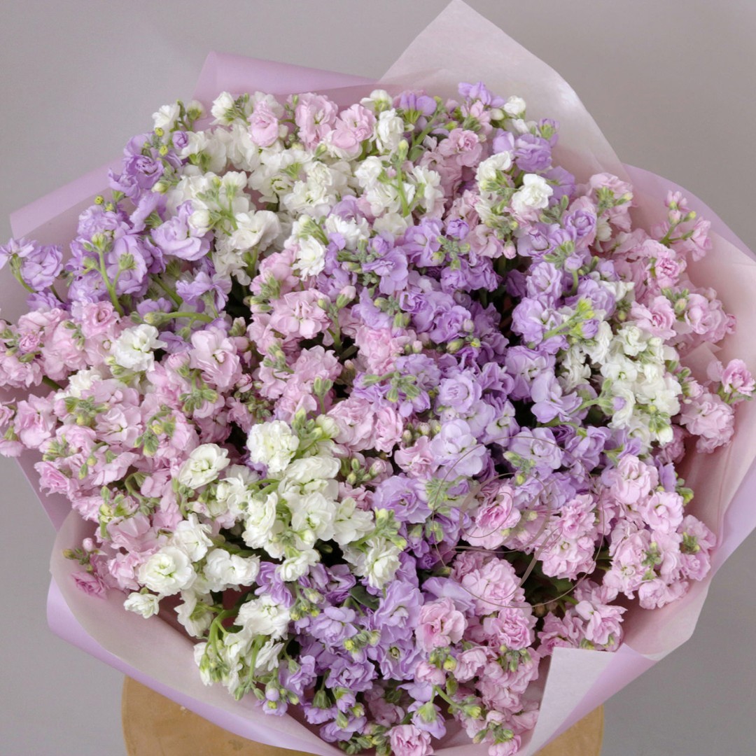 Маттиола букет купить с доставкой в Москве. Душистые цветы маттиолы бывают разного цвета, на одном стебле собрано множество соцветий, цветок невероятно ароматный. Вы можете выбрать любое количество цветов указанное в перечне к данному букету.