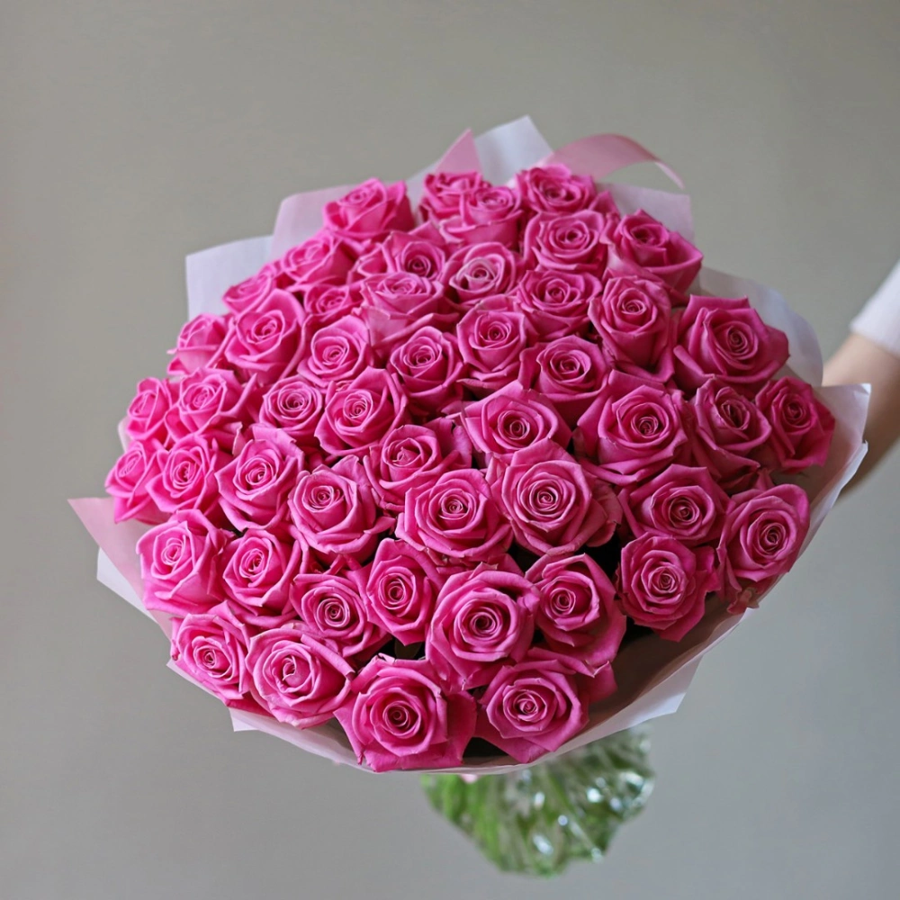 Букет из розовых роз сорта Аква с эвкалиптом. Вы можете выбрать любое количество цветов указанное в перечне к данному букету.