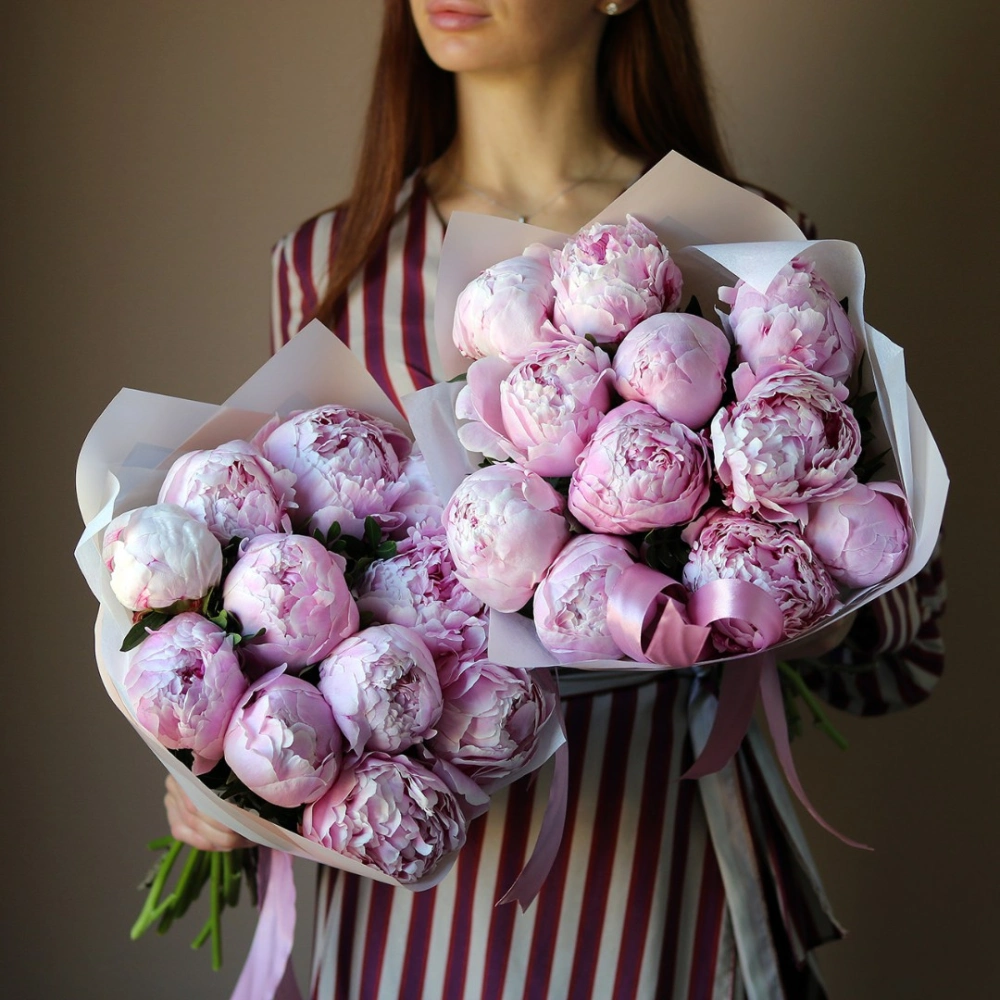 Нежные розовые пионы Dakota flora. Букет пионов купить. Вы можете выбрать любое количество цветов указанное в перечне к данному букету.