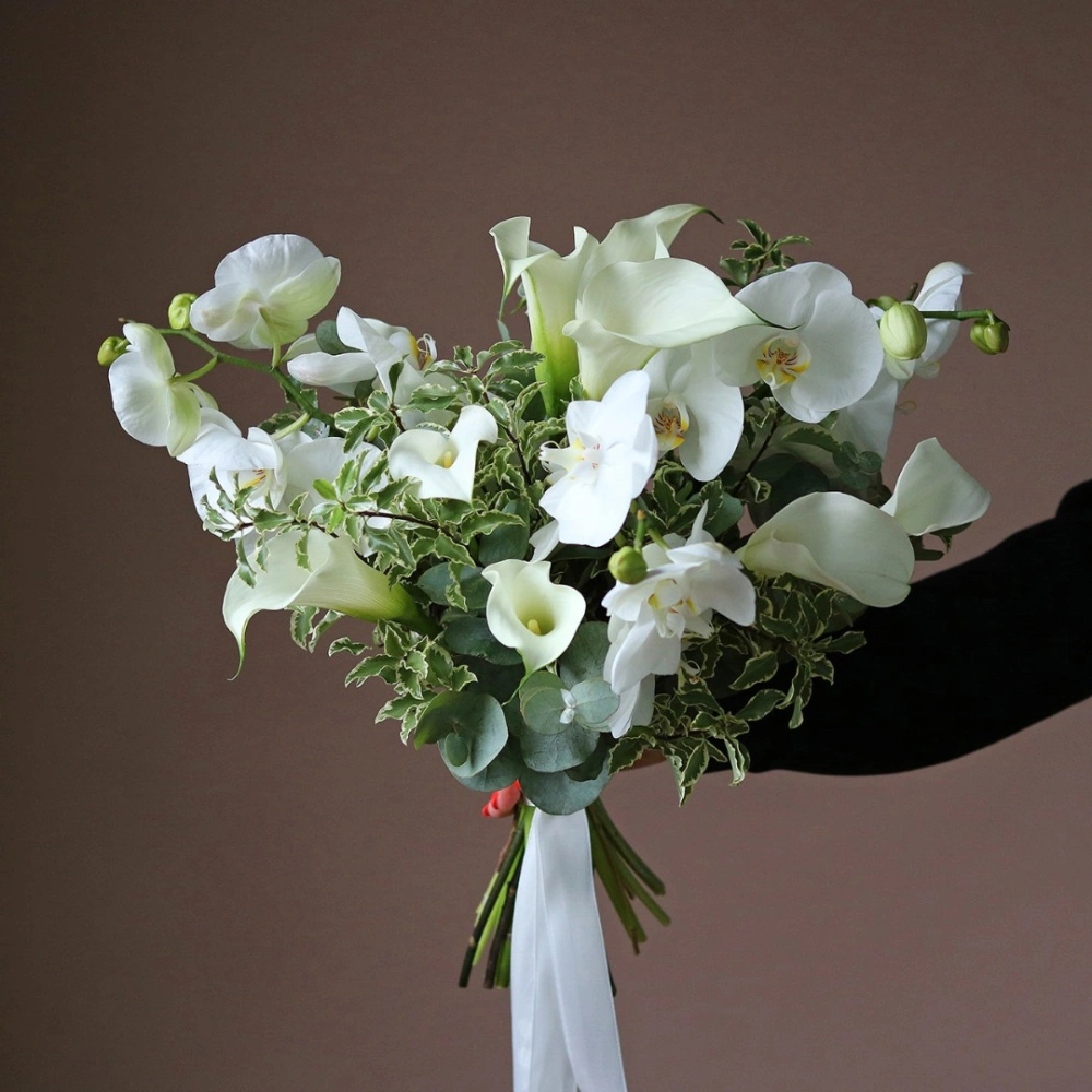 Понравился сервис в подборе букета на торжество, цветы были свежие, всё очень красиво, очень стильна...