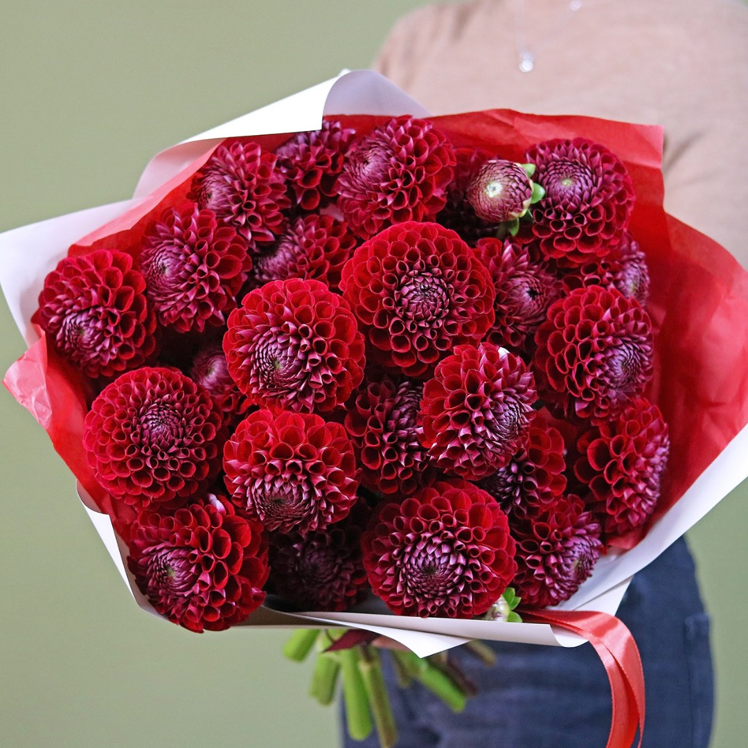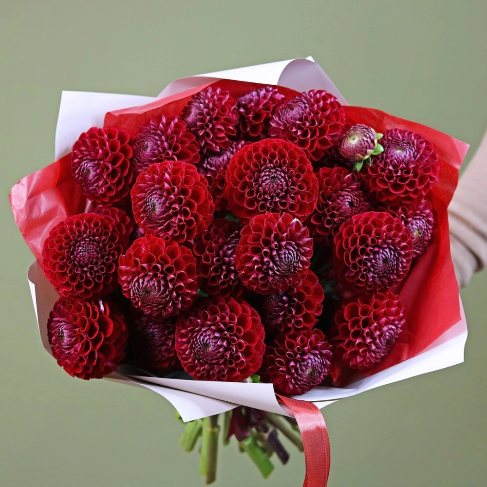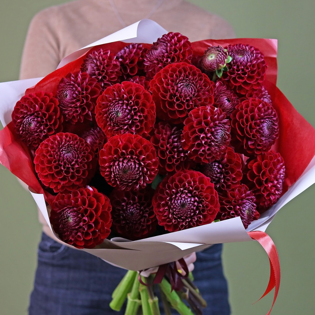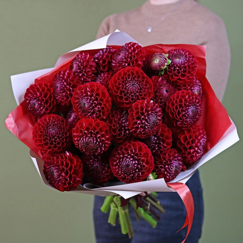 Букет из красных Георгин. Вы можете выбрать любое количество цветов указанное в перечне к данному букету.