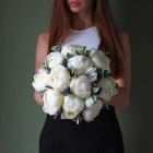 В составе букета: белые пионы, лаванда, зелень декоративная.