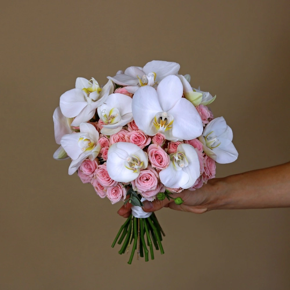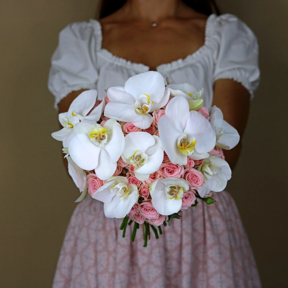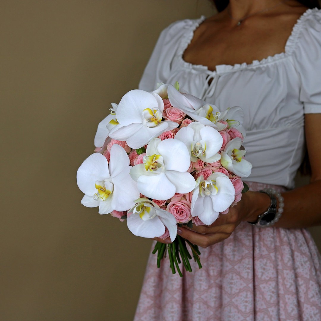 Букет невесты из кустовых роз и орхидеи