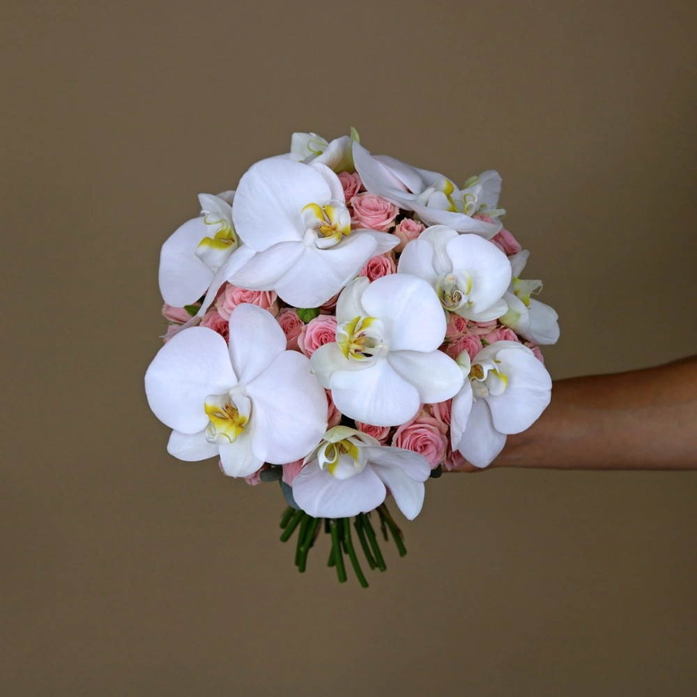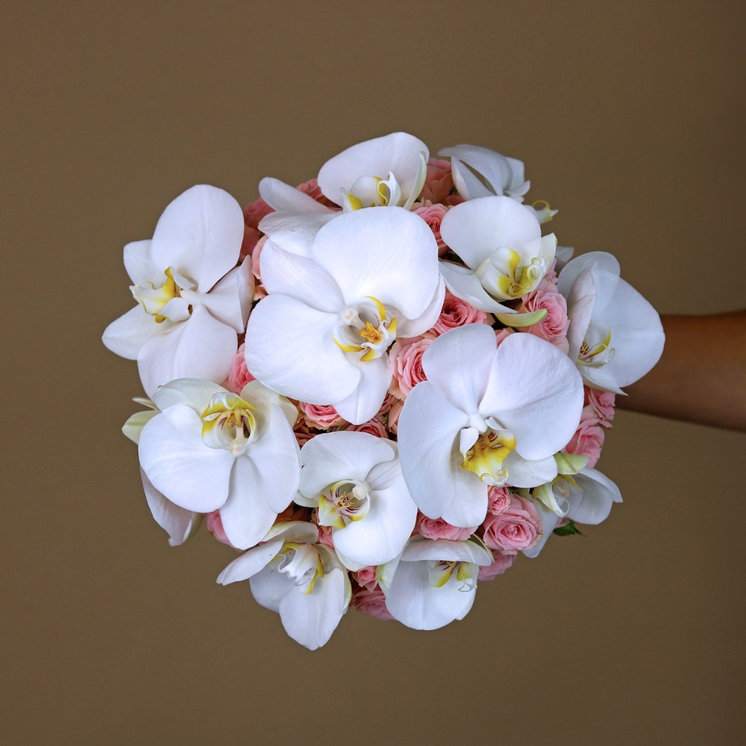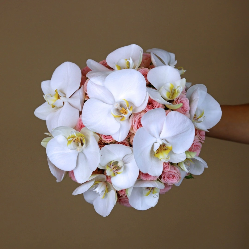 Букет невесты из кустовых роз и орхидеи