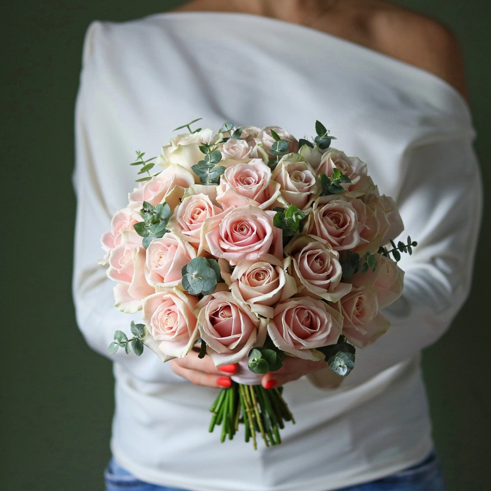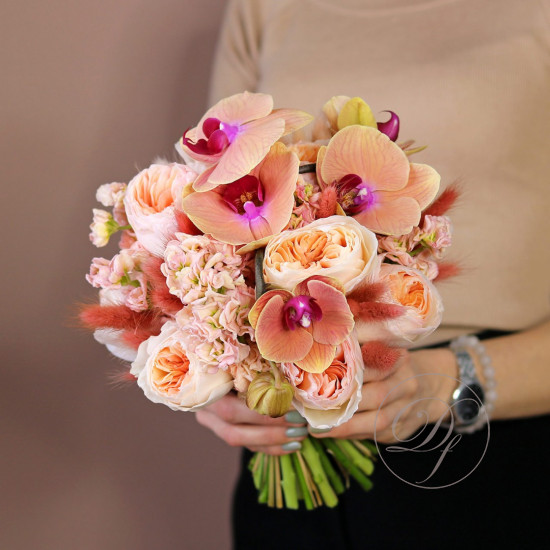 Для своих букетов мы используем самые свежие цветы, дарим бутоньерку для жениха в стилистике букета невесты. К этому букету вы также сможете приобрести: цветочный браслет, венок или цветы для прически, букеты для подружек невесты, лепестки роз.