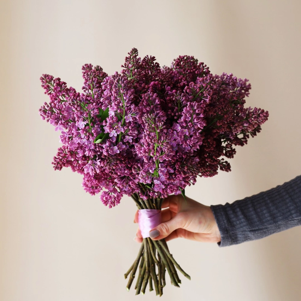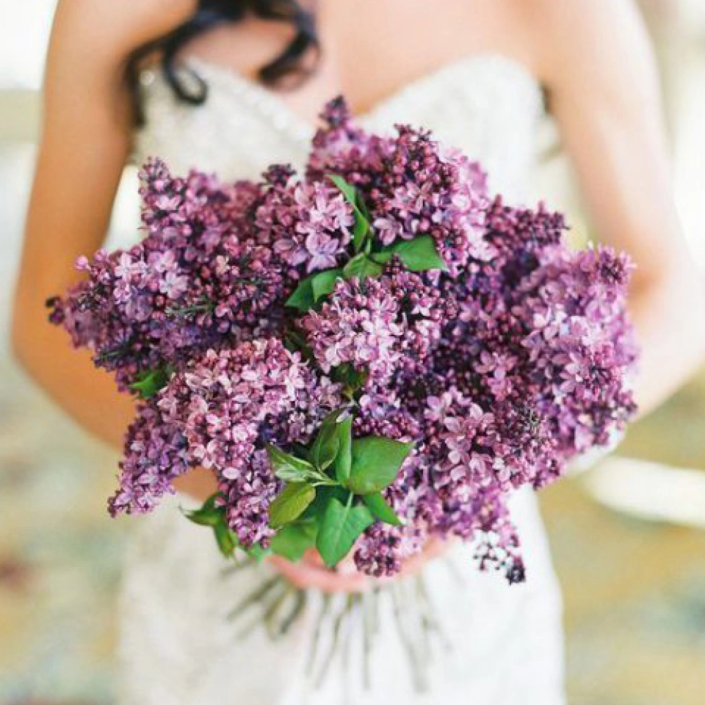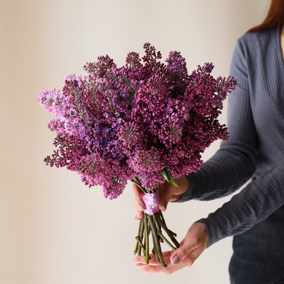 Букет невесты с яркой сиренью – идеальный подарок на любой повод. Ножка букета декорирована атласными лентами.