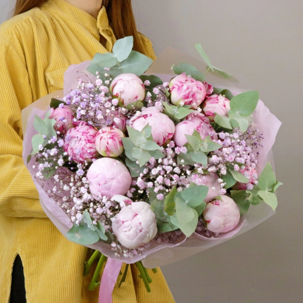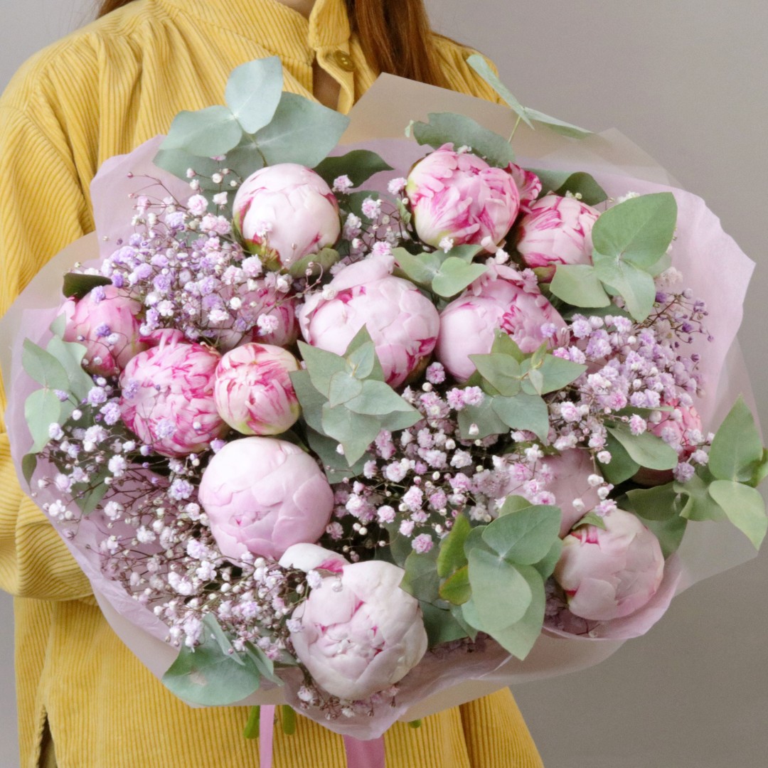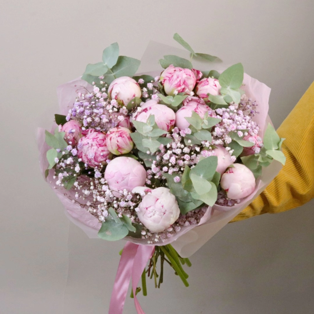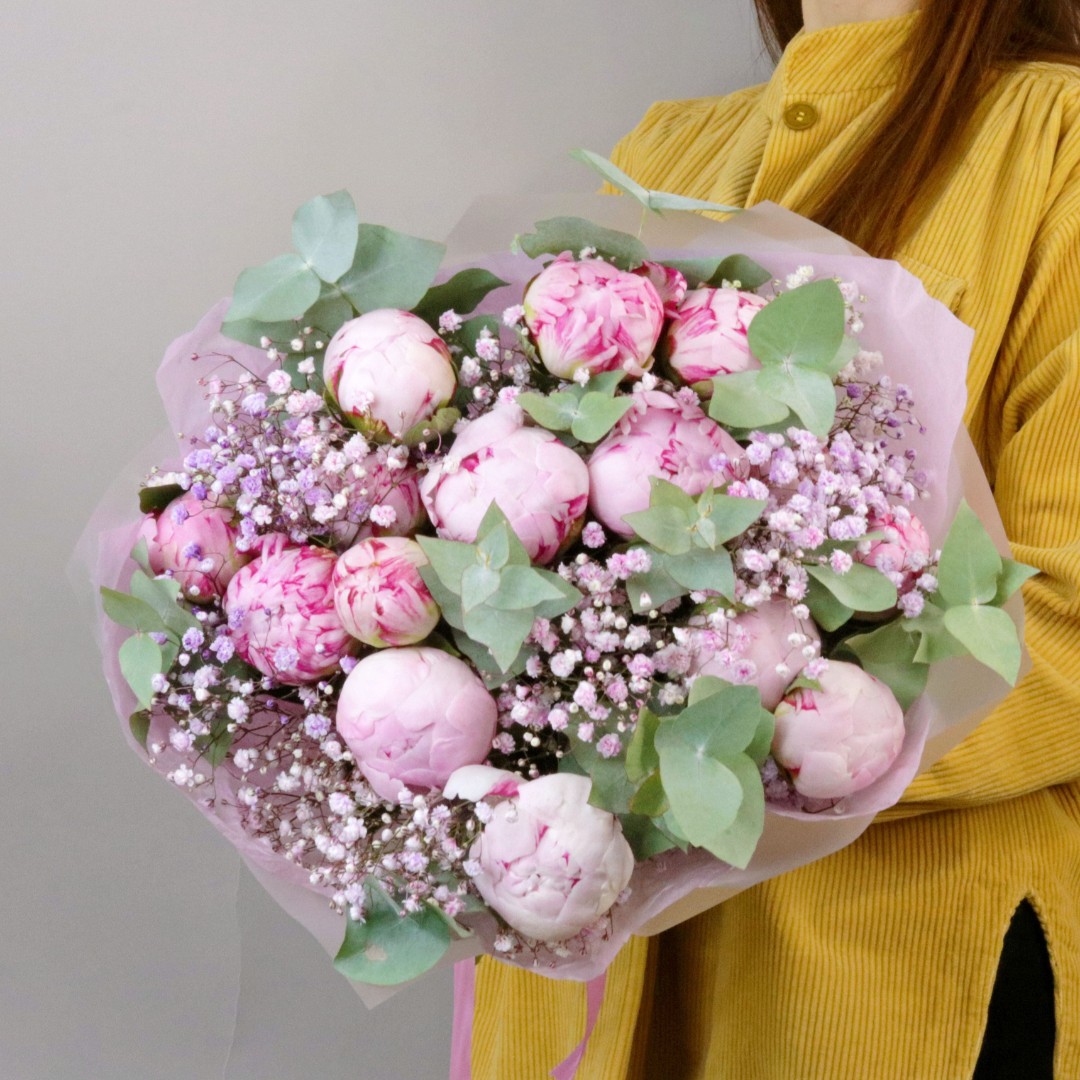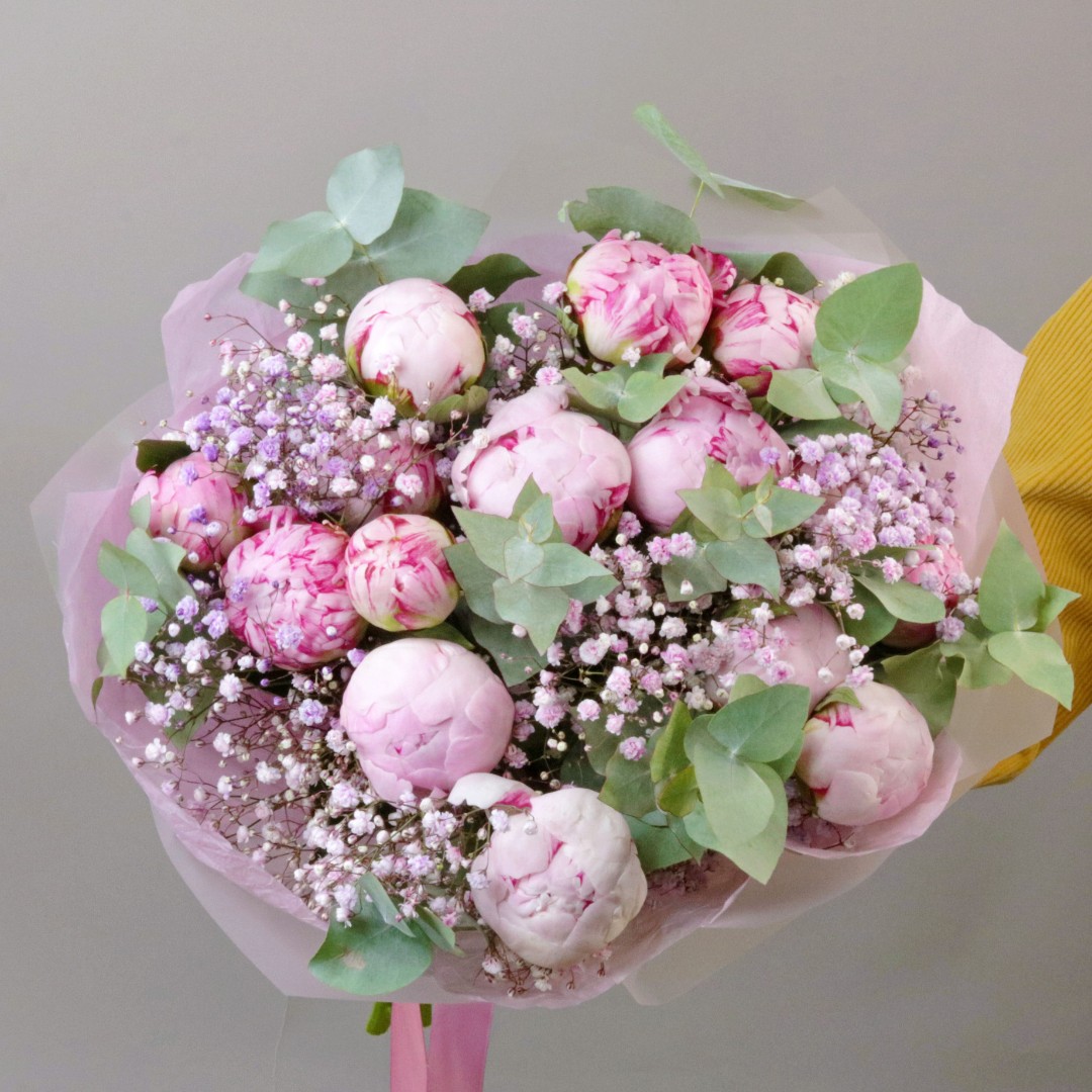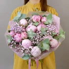 Букет пионов с гипсофилой - современная классика стильного букета. Вы можете выбрать любое количество цветов указанное в перечне к данному букету.