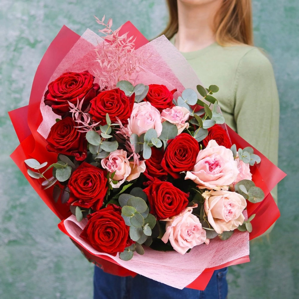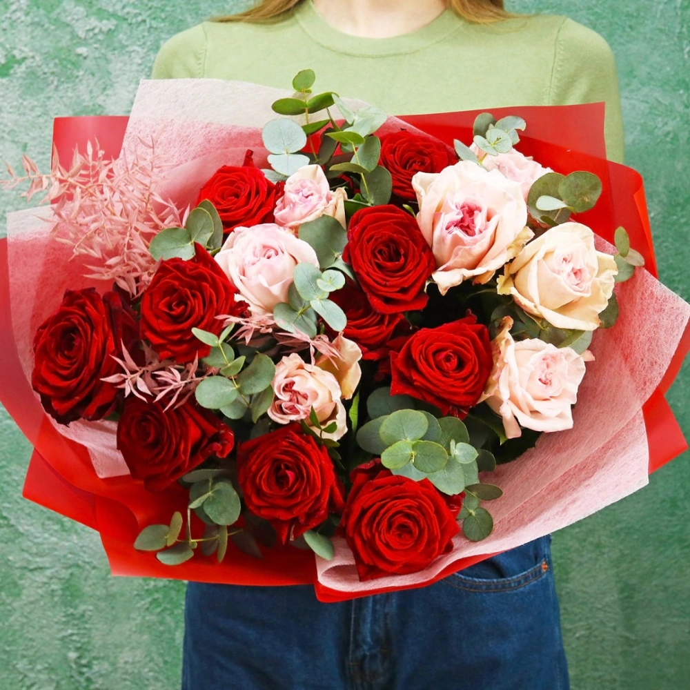 Букет роз Гран При и Пинк Охара