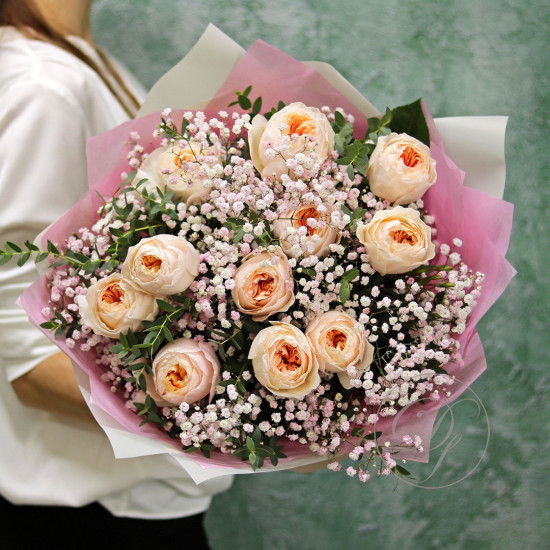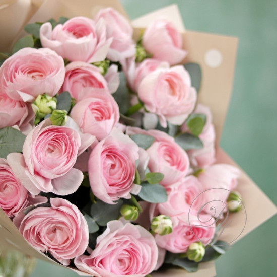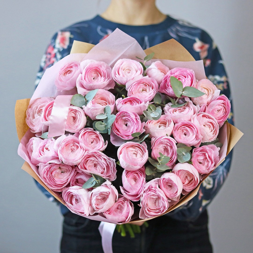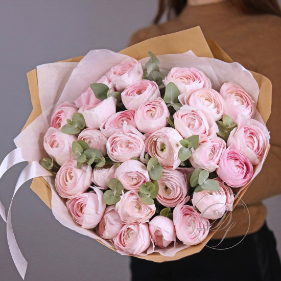Букет из Ранункулюсов с эвкалиптом. Вы можете выбрать любое количество цветов указанное в перечне к данному букету.