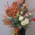 Понравился сервис в подборе букета на торжество, цветы были свежие, всё очень красиво, очень стильна...