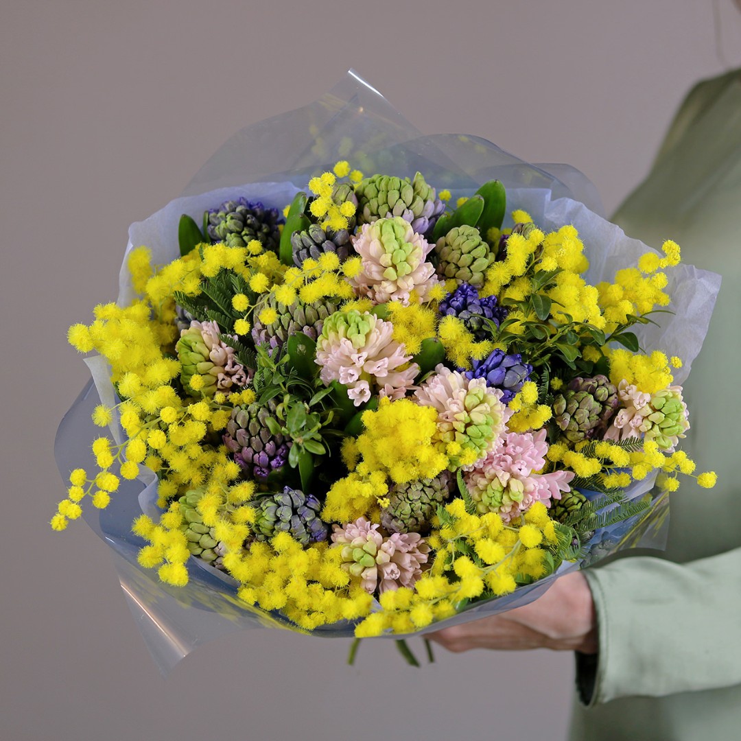 Букет с мимозой и гиацинтами
