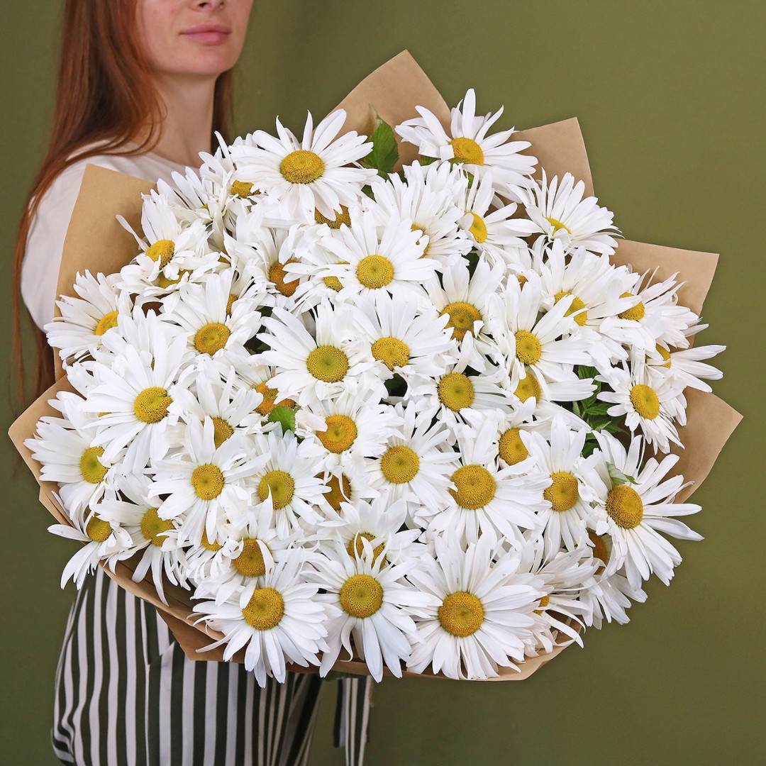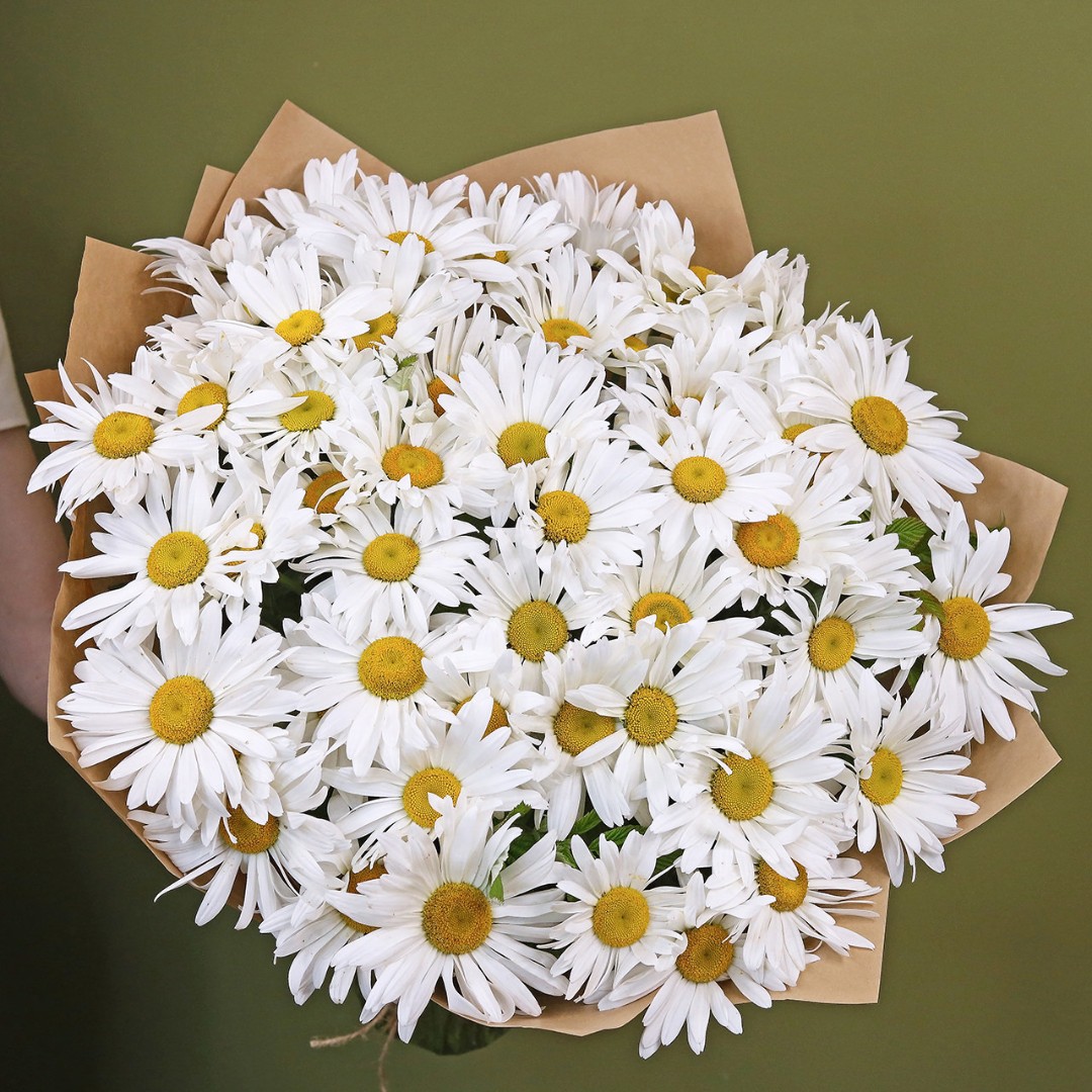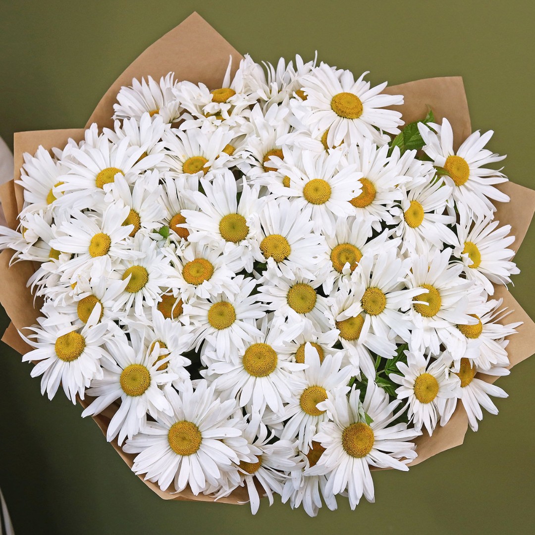 Букет из крупных садовых Ромашек. Вы можете выбрать любое количество цветов указанное в перечне к данному букету.