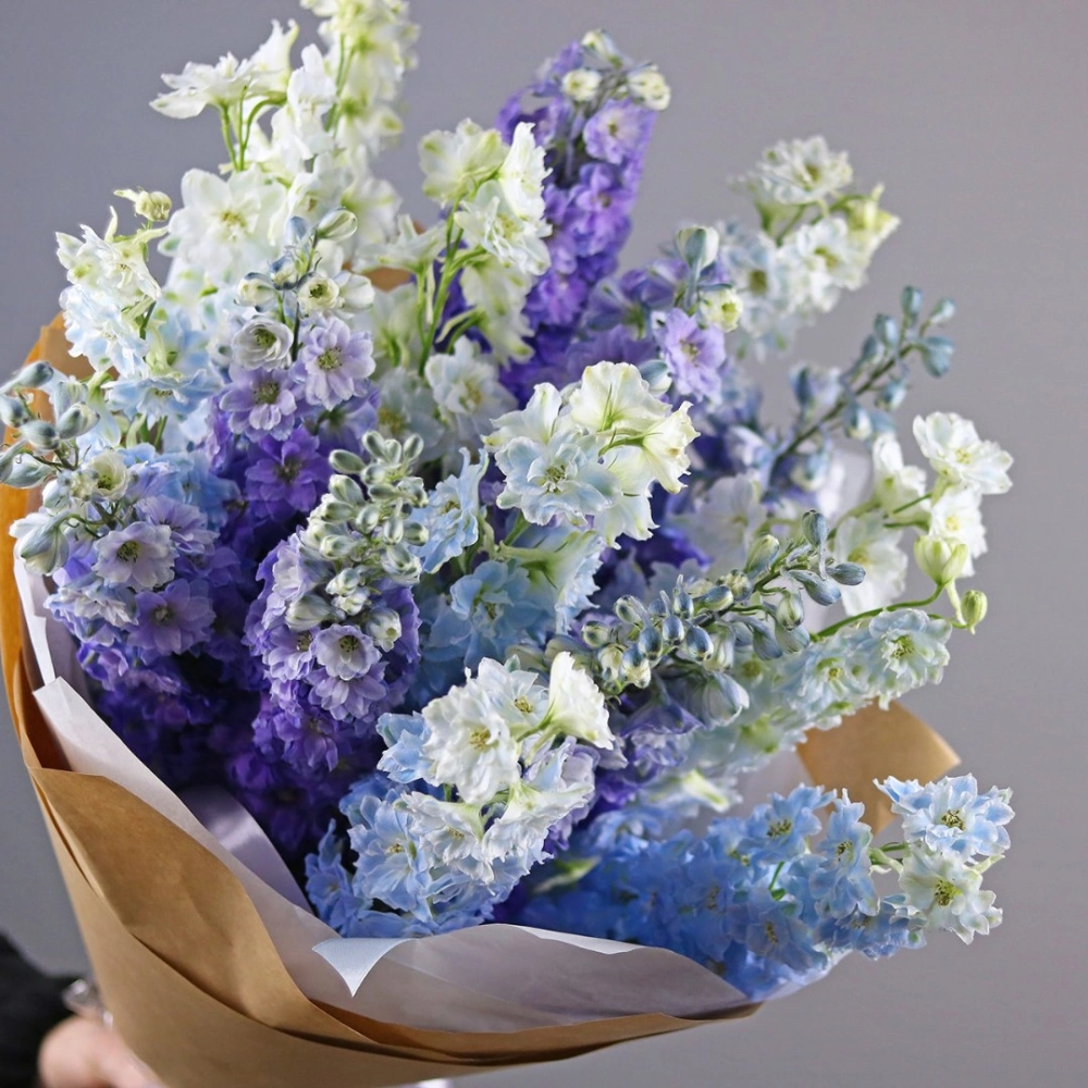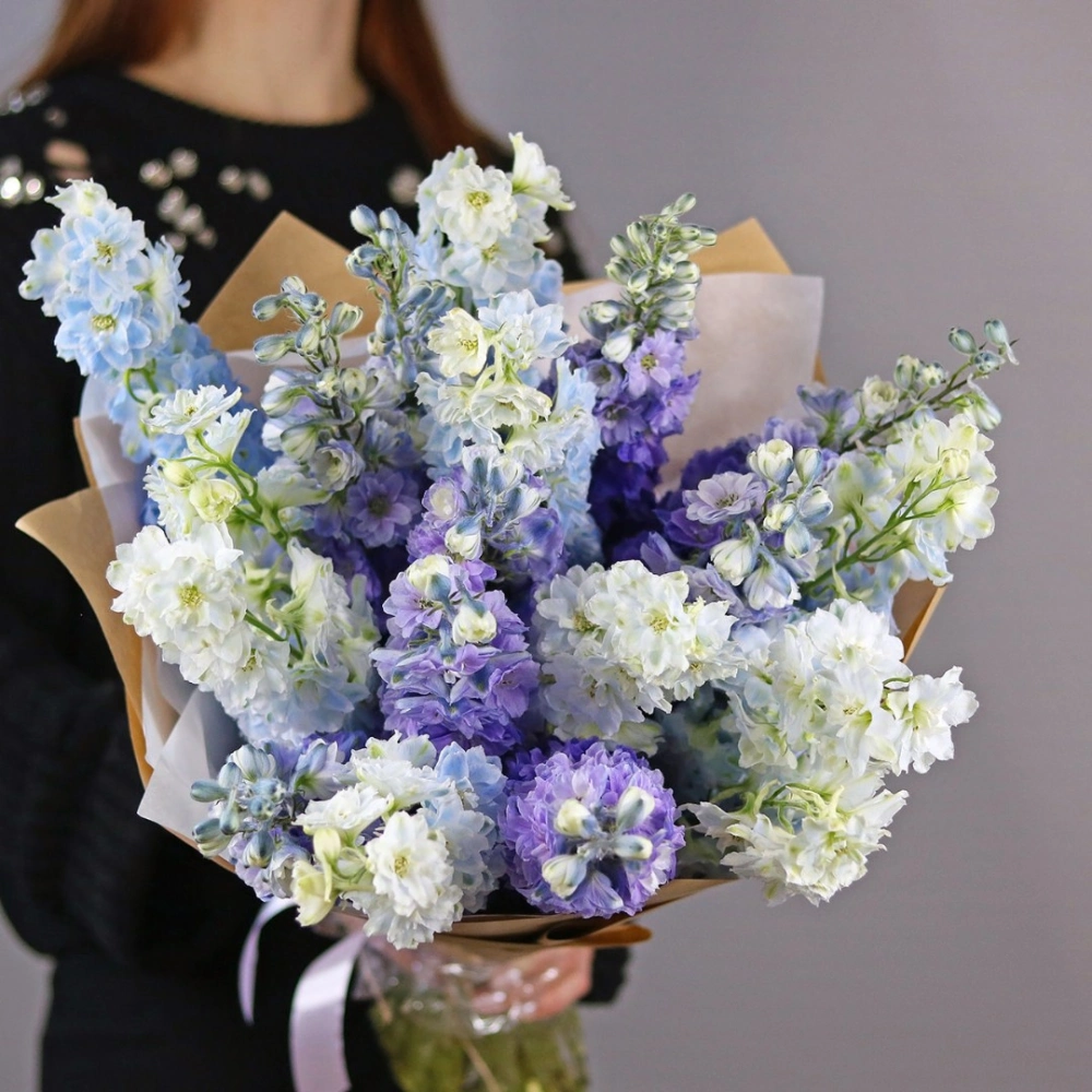 Букет из Дельфиниума. Количество цветов в букете вы можете выбрать в параметрах. Вы можете выбрать любое количество цветов указанное в перечне к данному букету.