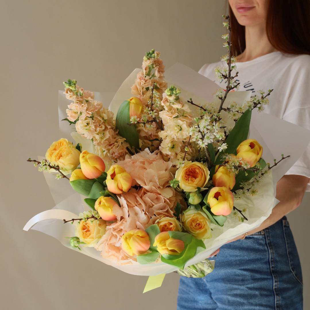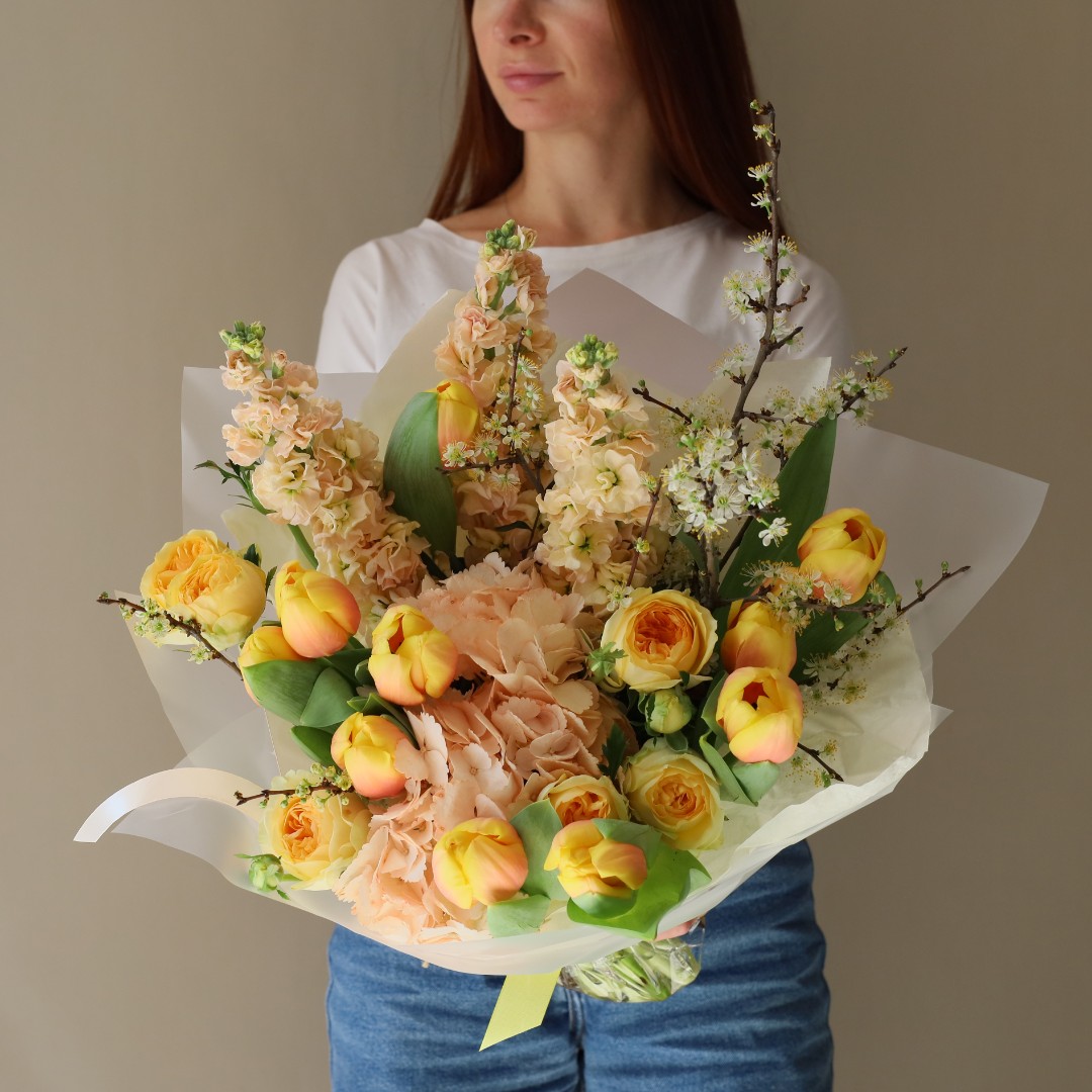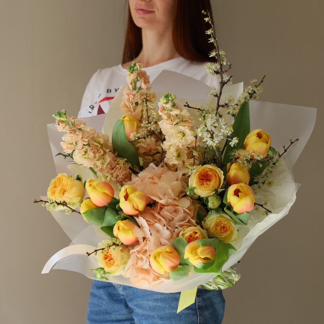 Курьер может оставить букет у двери, передать кому-то, или же отправиться по другому адресу (500 руб. в пределах МКАД).