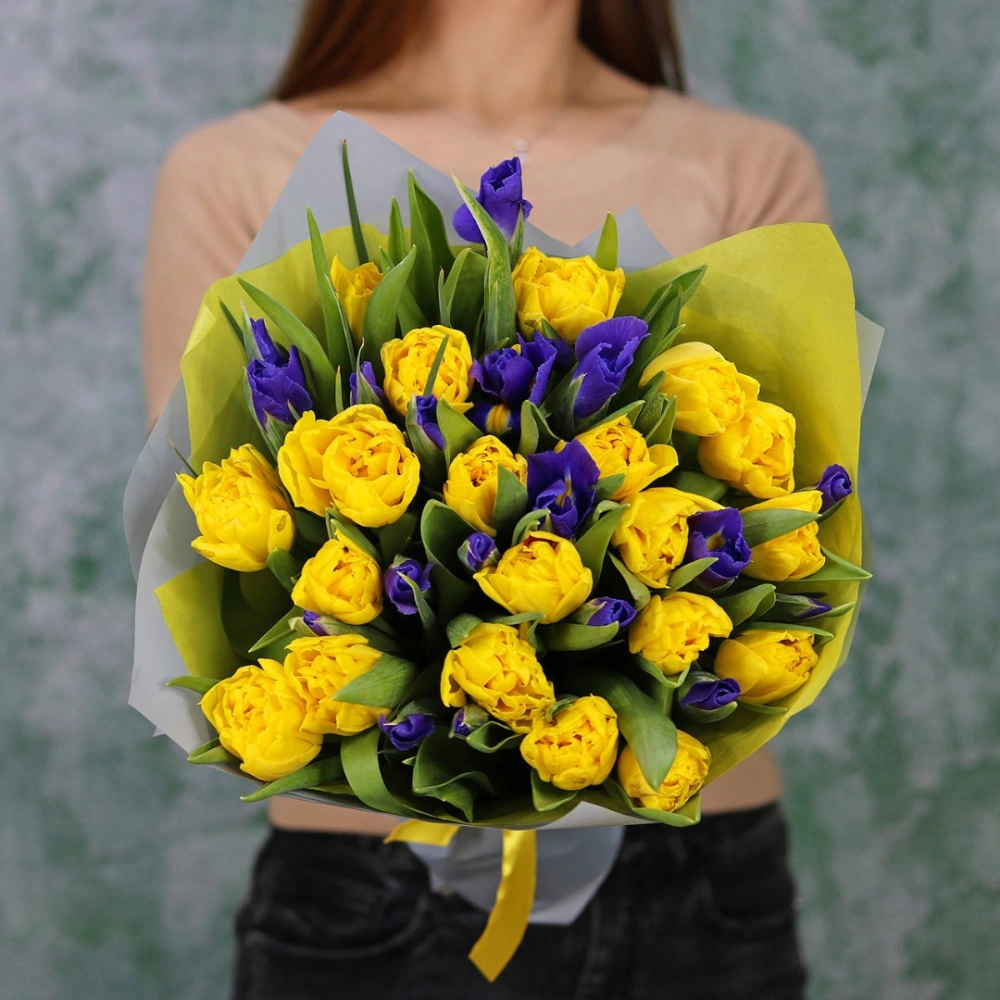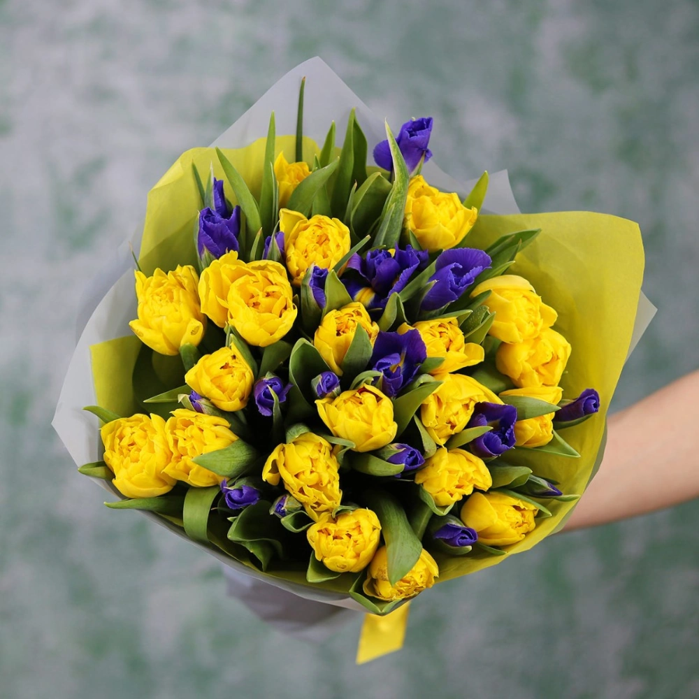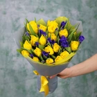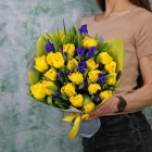 Букет желтых тюльпанов с ирисами