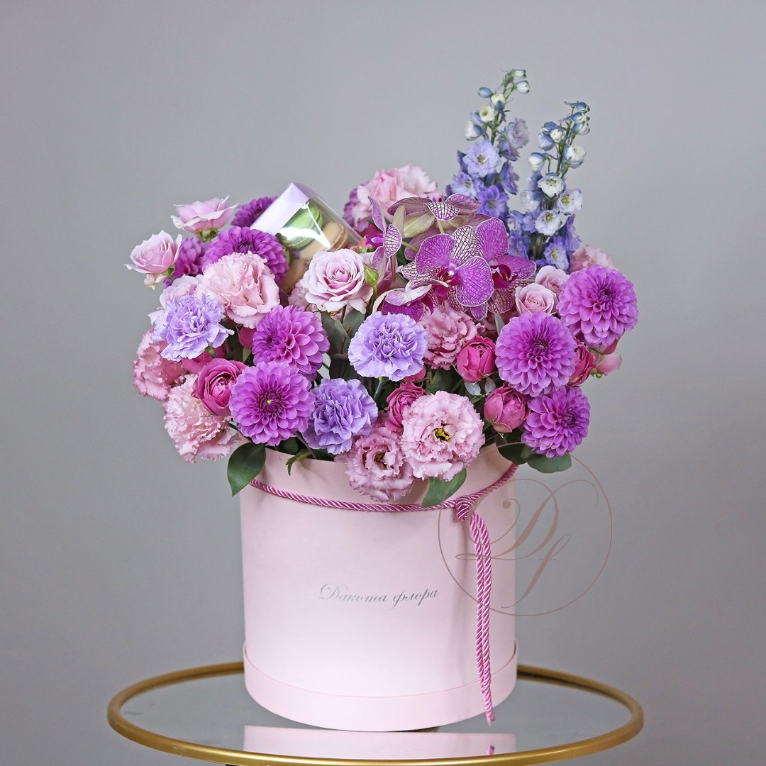Коробка с цветами и сладостями. На фотографии размер L.