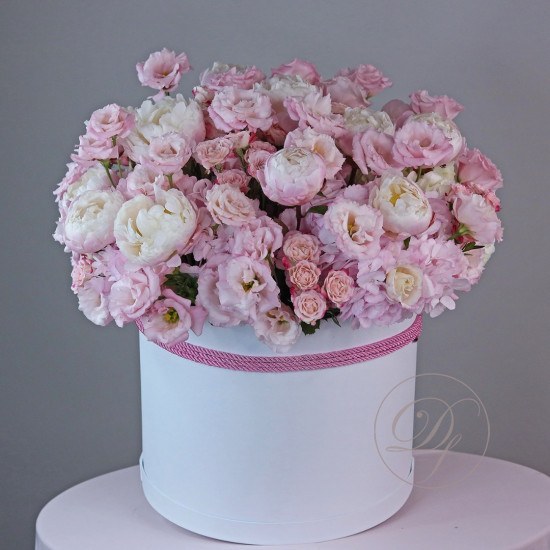 Цветы в коробках это композиции, составленные с использованием специальной губки Oasis (пиафлор) которая пропитана водой. Для того чтобы цветы дольше оставались свежими, добавляйте в нее немного воды каждый день.