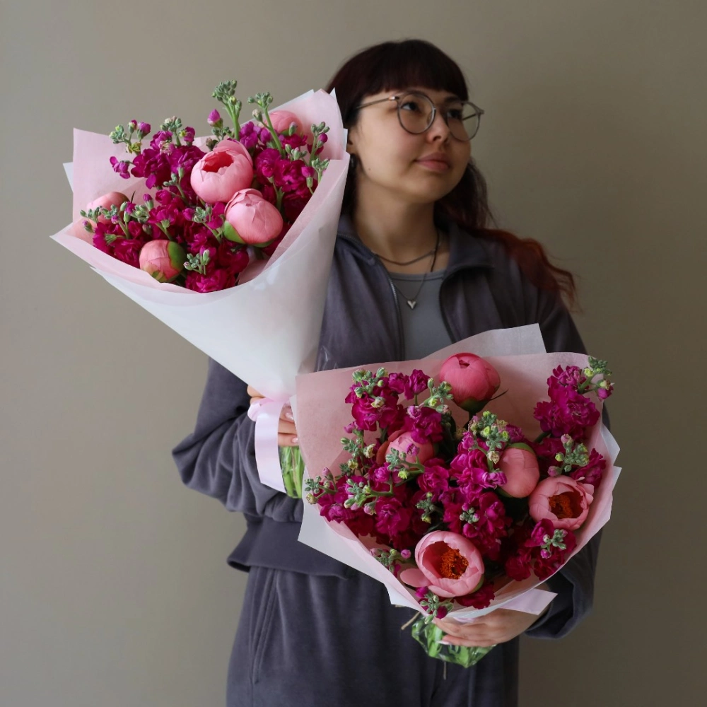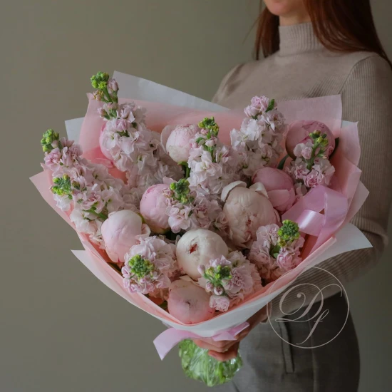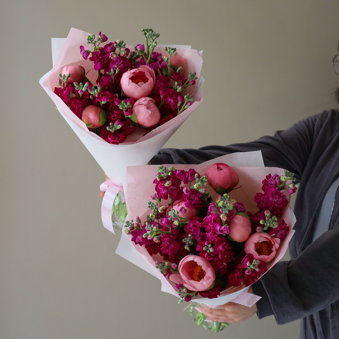 Дуо-букет с пионами и маттиолой