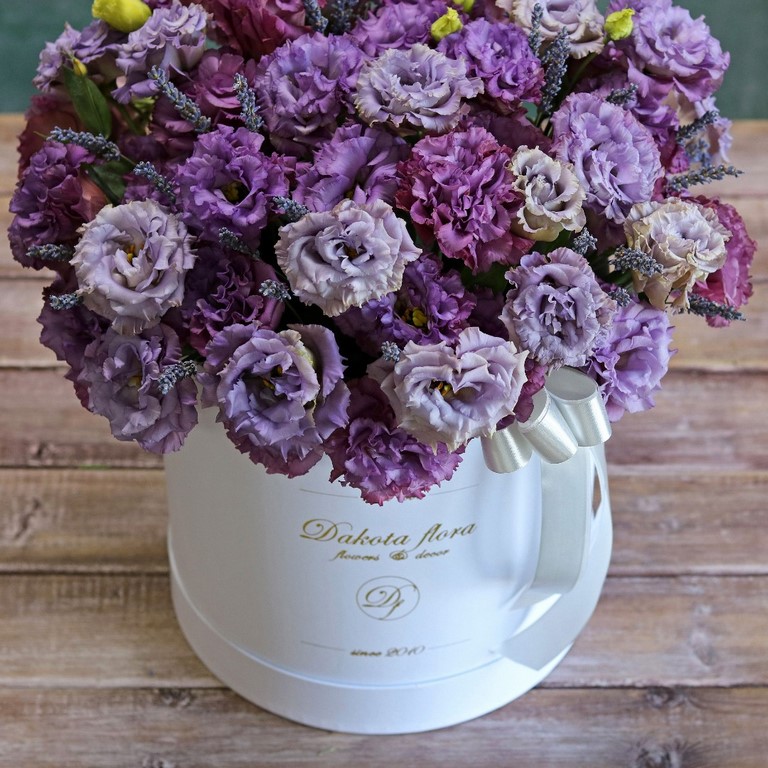 Цветы в коробках это композиции, составленные с использованием специальной губки Oasis (пиафлор) которая пропитана водой. Для того чтобы цветы дольше оставались свежими, добавляйте в нее немного воды каждый день.