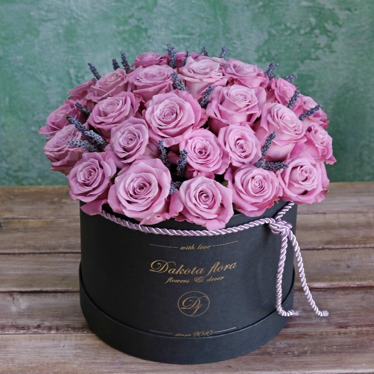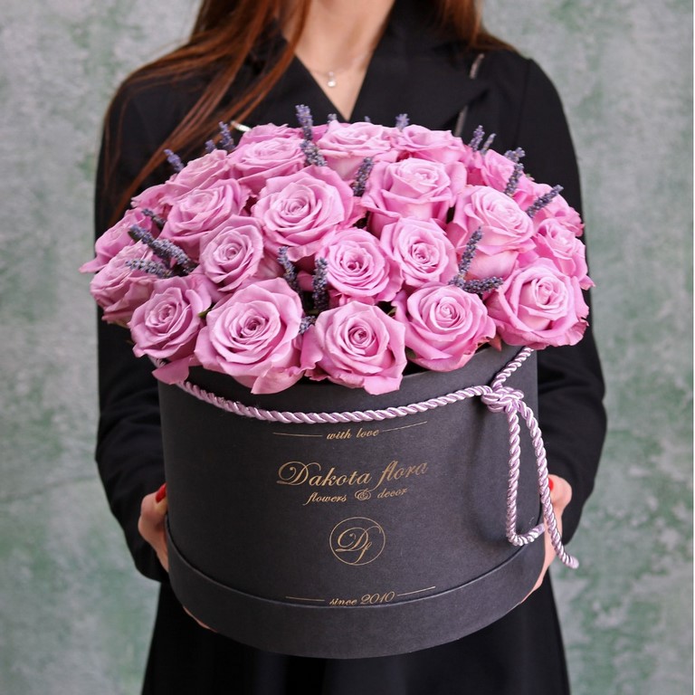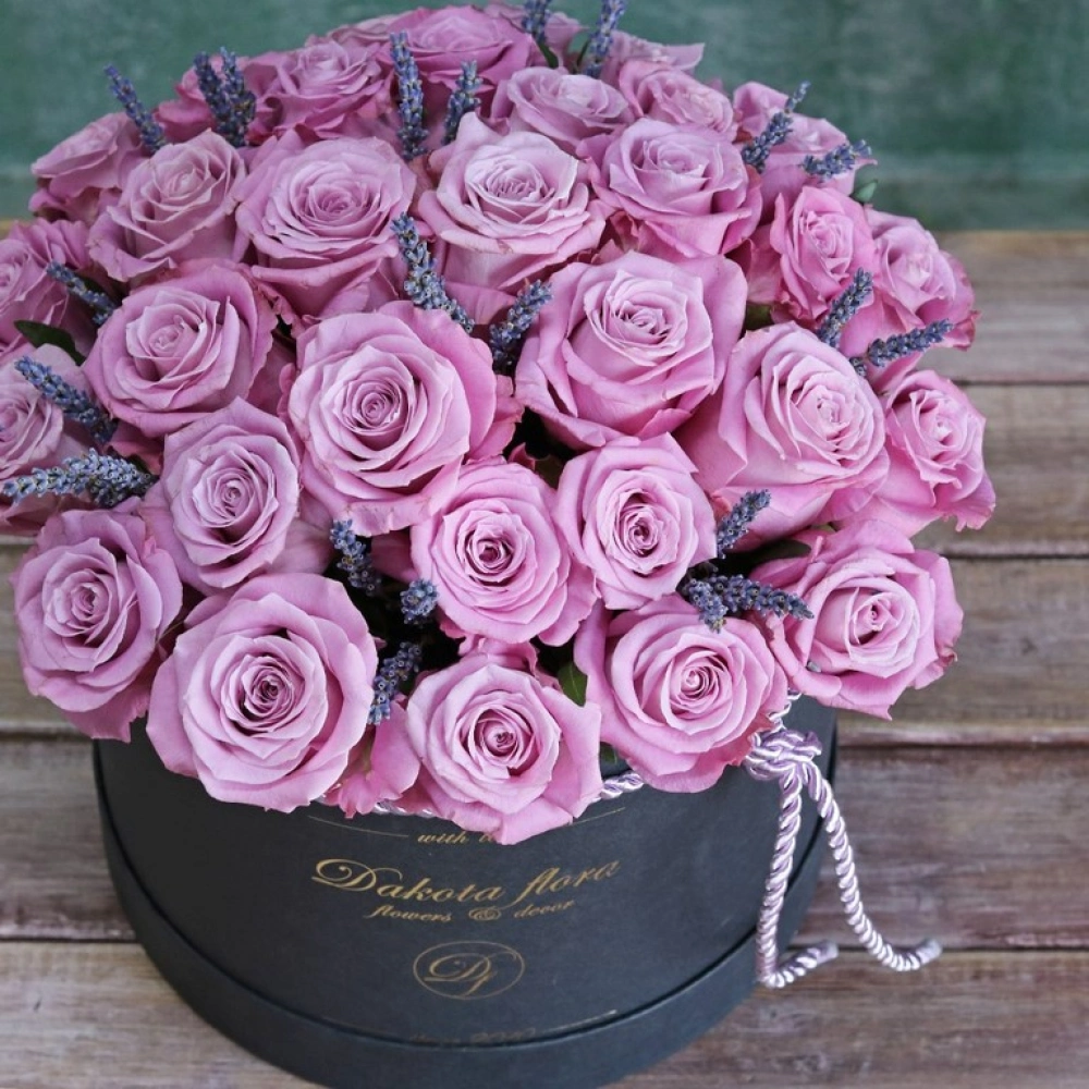 Фиолетовые розы в коробке