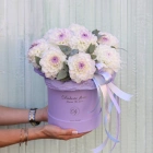 Цветы в коробках это композиции, составленные с использованием специальной губки Oasis (пиафлор) которая пропитана водой. Для того чтобы цветы дольше оставались свежими, добавляйте в нее немного воды каждый день.
